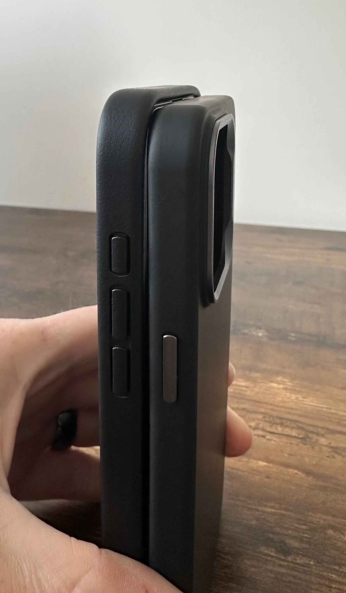 I prefer the floating metal buttons on the 15PM version but the buttons look fine with the black phone underneath.