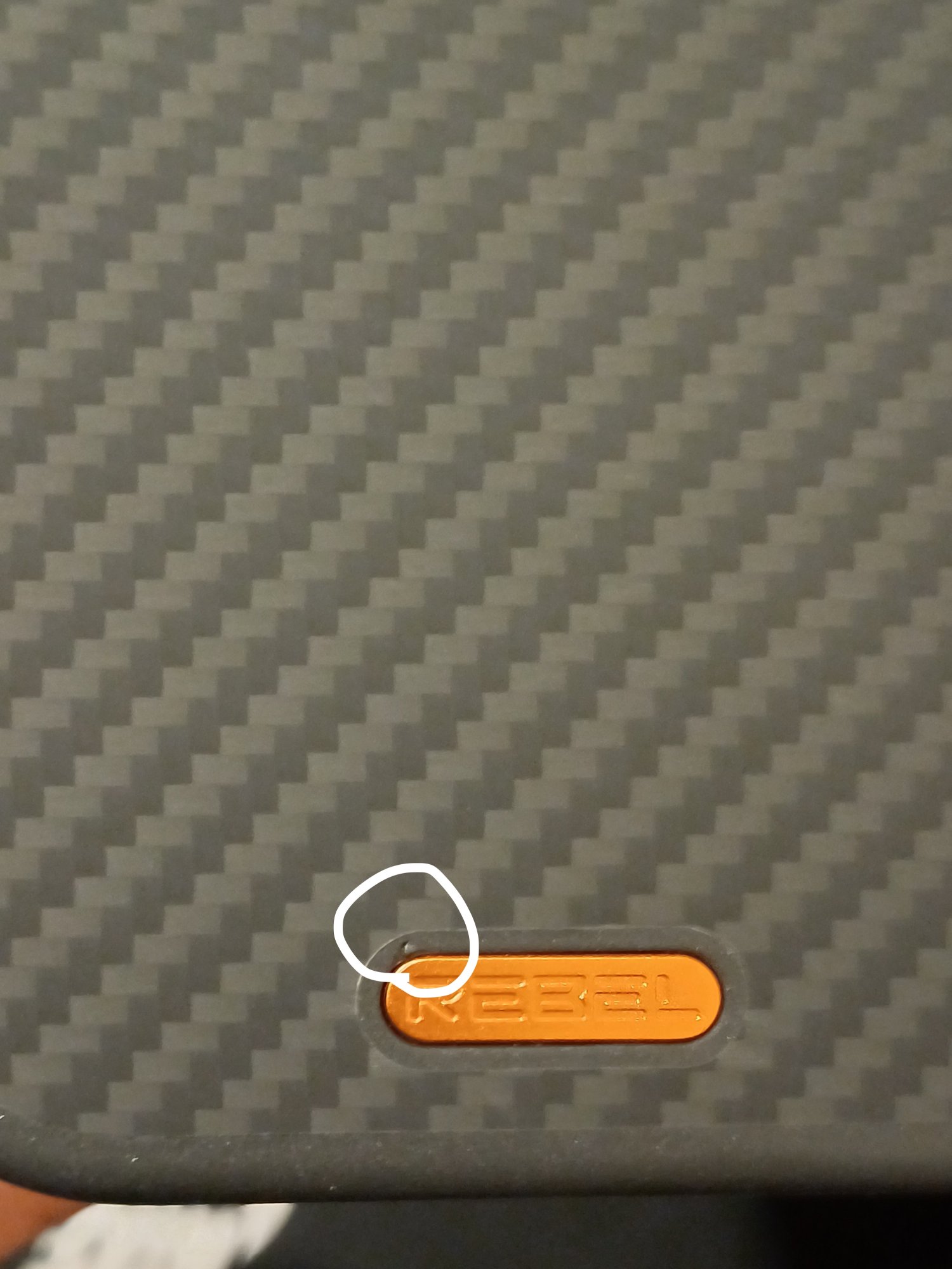 My sisters 16 Pro Phone Rebel Gen6 case came with a little dent where the Phone Rebel sign is (circled).