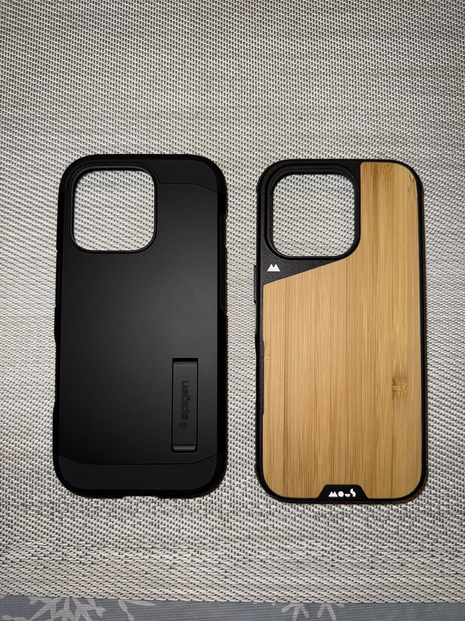 I’m worried of gunk getting in the gap between the bamboo and the rubber on the Mous case. Spigen case seems more cleanable and hygienic.