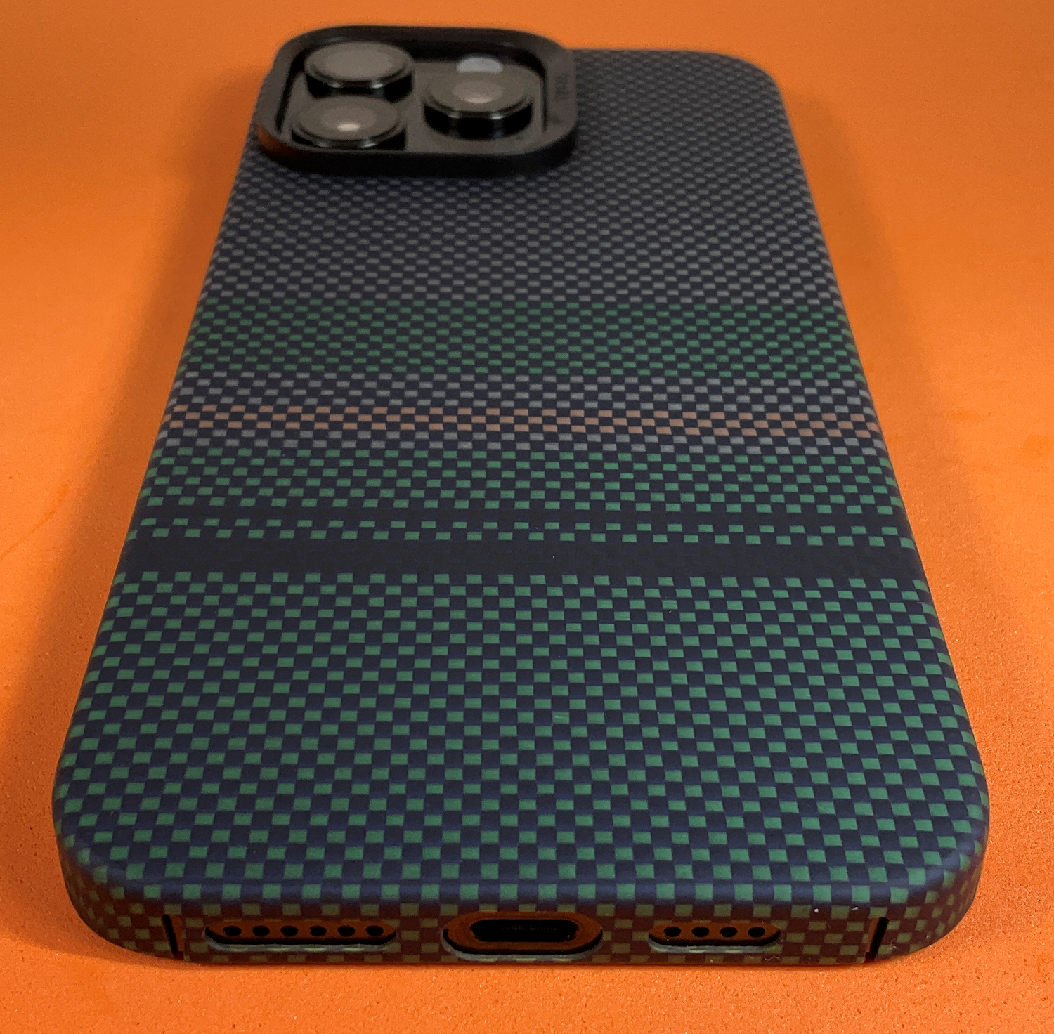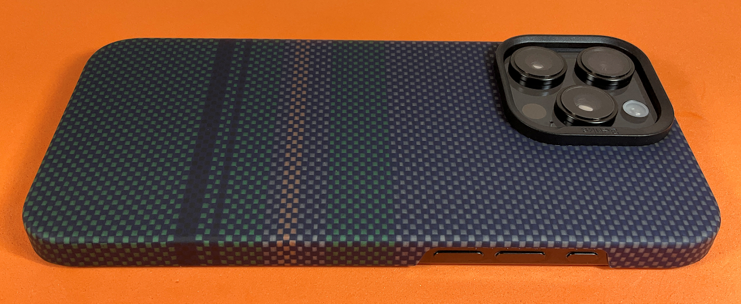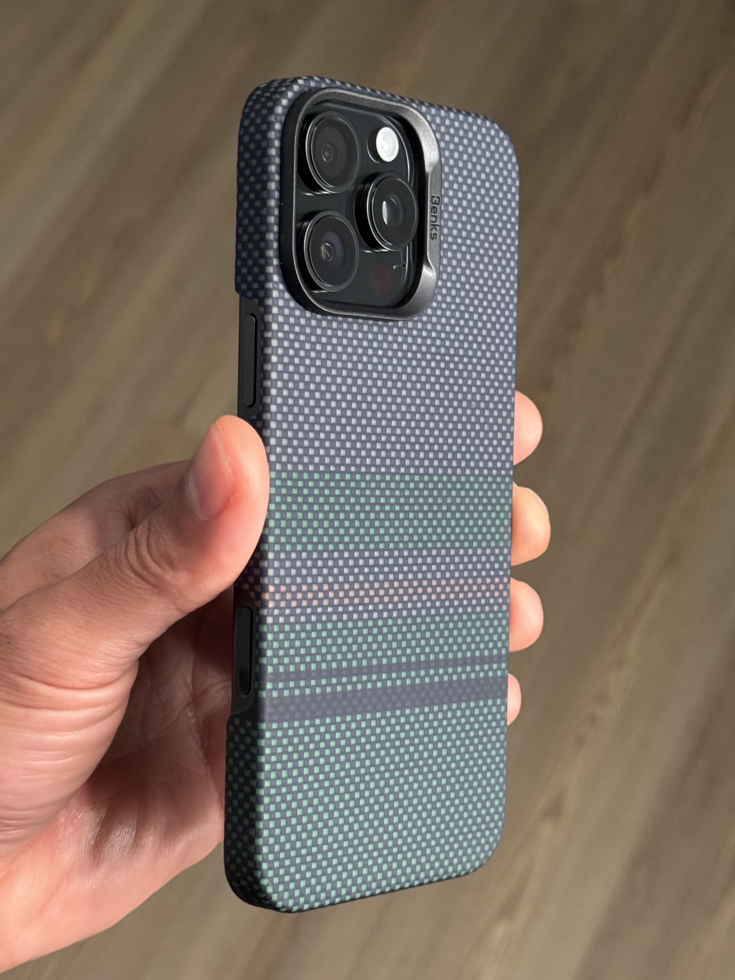 That's why fall in love with Arc Pulse. It's crafted perfectly symmetrical on all 4 edges (when I look at display) without any small defects. It has polymer inside that absorbing impacts and can't scratch my phone from inside. Fits perfectly well without any issues that I had with my last 3 Pitaka cases. I have exposed all buttons without any sharp edges. I can do swipe gestures from bottom and also from sides without touching "sharp" borders of case. I can see very nice thin borders of 16 Pro Max without additional bulk of any case. When iPhone is on the table it doesn't wobble. Thanks to bigger overlap it's easier to pick it up and I'm not worry about placing it with display down without any screen protector. I can put it on any side of the phone and it's laying on the table. It's very unusual case and conversation starter, many people like it and ask about it. Till now I didn't meet anyone with Arc Pulse in person. Aramid cases are all around.