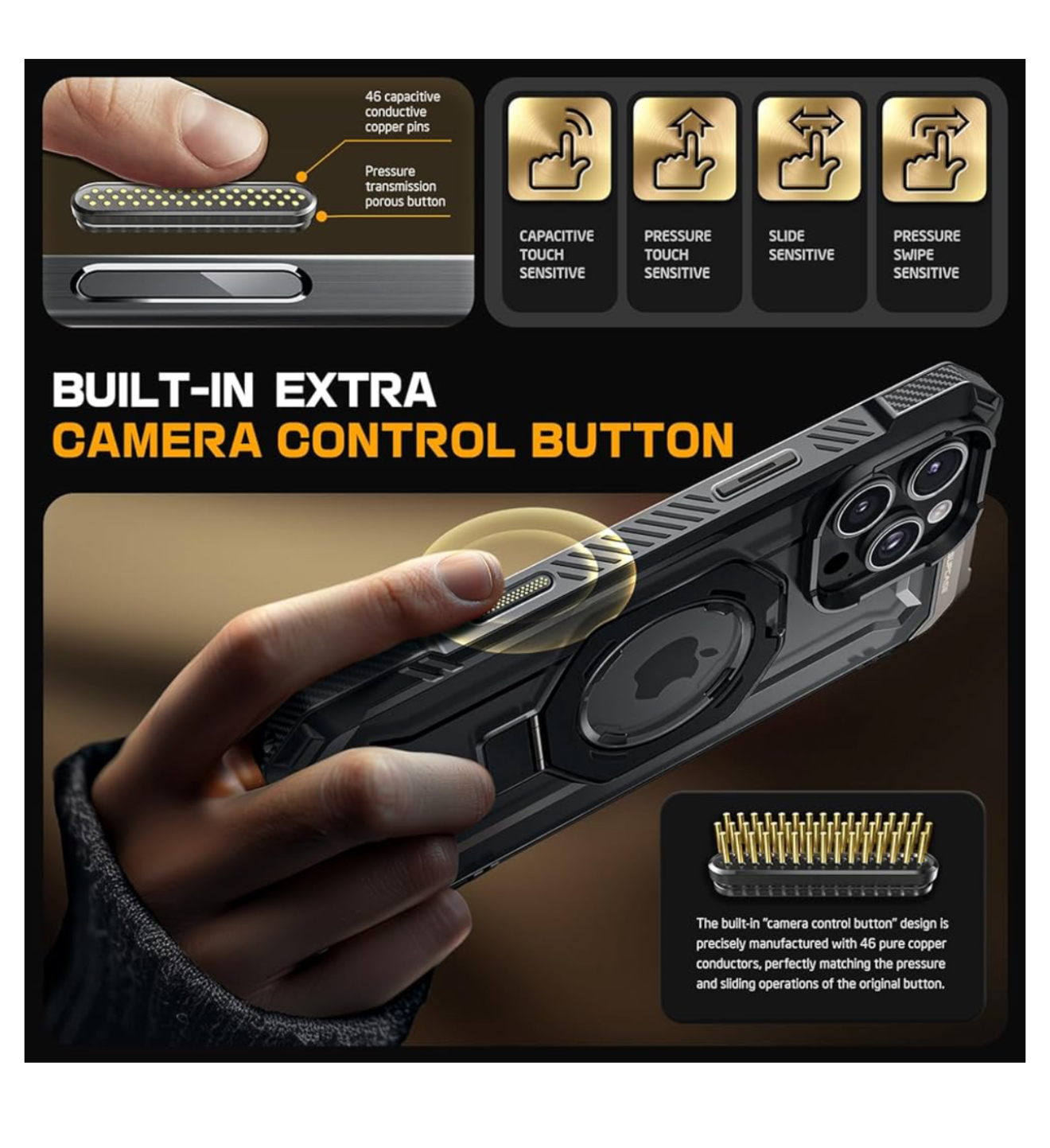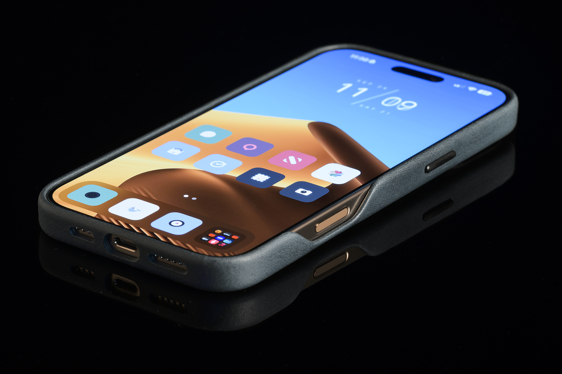 Here is the gray caudabe sheath w black titanium iPhone 16pm. Used sheaths for the last few years. This one has great grip- love the new metal buttons! The way it handles fingerprints/ wear in general (durability) is one of my favorite parts. I also purchased a Spigen ultra hybrid, frost black- cheap and slippery - doesn’t even compare to the sheath.