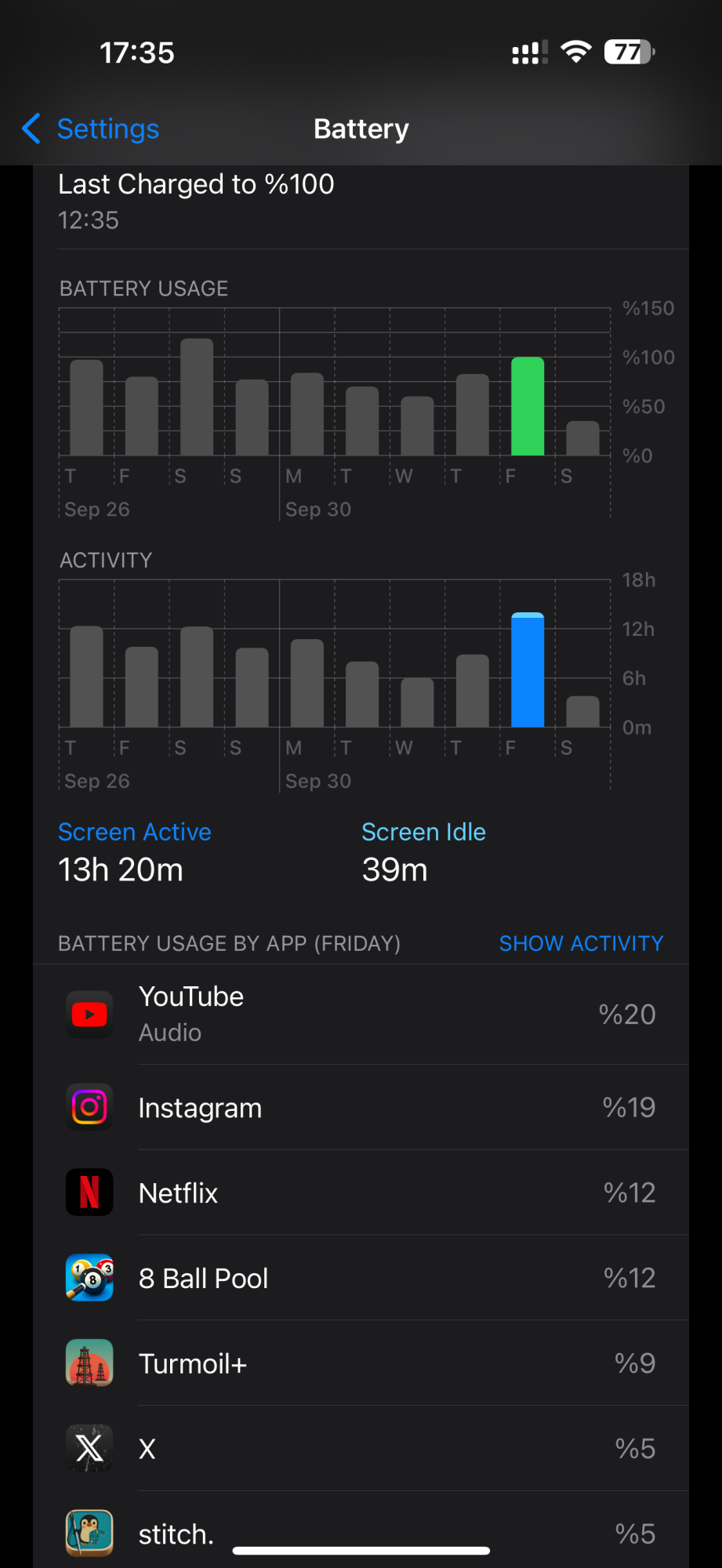 I’m comparing my activity to my previous iPhone 14 I have to my girlfriend. She is at 78% while I’m at 45%. Something not going right here.