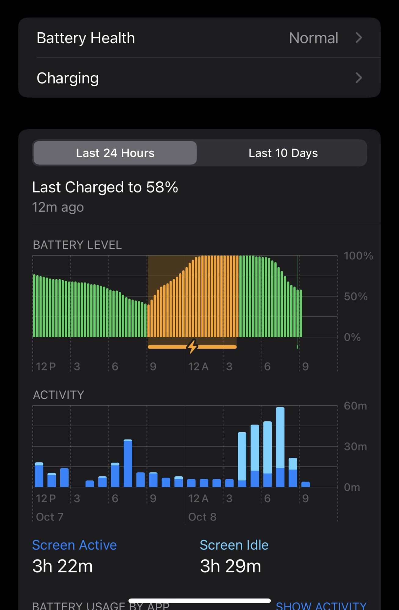 3 hours of screen usage hand its at 58%. It’s absolutely comical how bad this battery is.