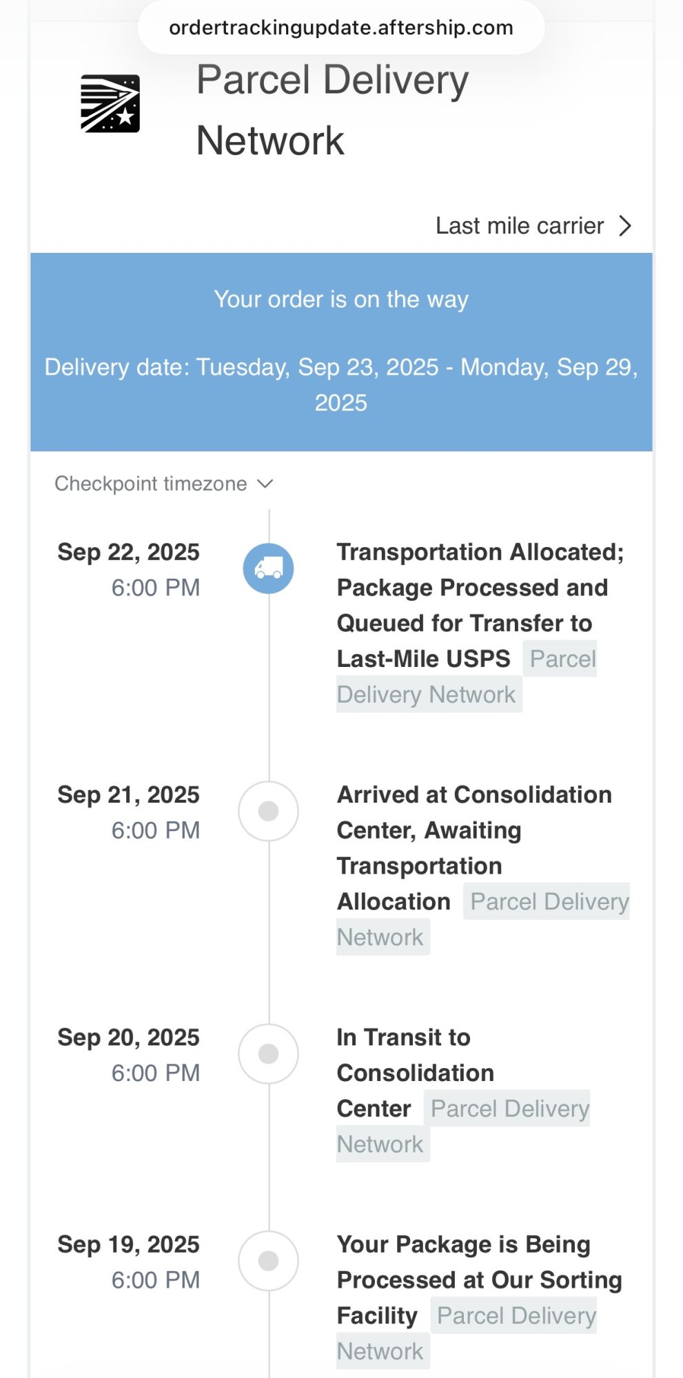 Ugh! My order shipped on 9/16. Tracking is SLOWLY progressing.I placed my order on 9/11, shipped on 9/13, and there’s still no sign of it.