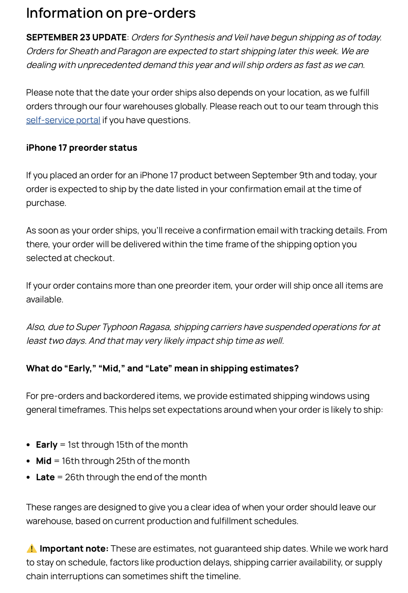 * We’re monitoring this situation closely with our logistics partner.