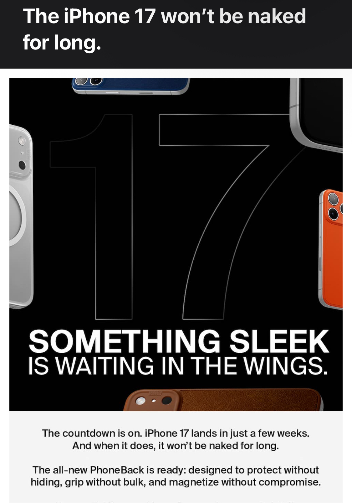 Süti definitely checks off the minimalist mark. I just have a hard time figuring out which color. I’m going with a white 17PM which will go with any color.Süti 🙌 I plan on getting the Suti phone back in silicone or carbon fiber for 17 pro. I currently use Arc Pulse or Pitaka MagEZ with PopSocket PopGrip. Based on my preference for minimalist cases, the Suti could be the one. I have high hopes!