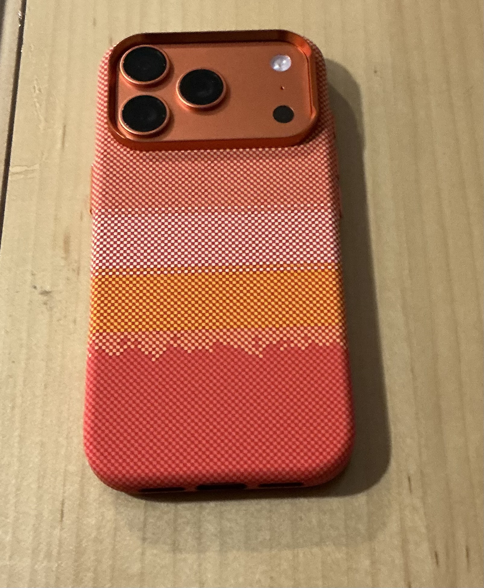 Anyhow.. it's this one: Orange Metal Lens Frame Carbon Fiber Pattern Phone Case For iPhone 17 Pro Magnetic Wireless Charging Protect Cover *Mine is Color "E"