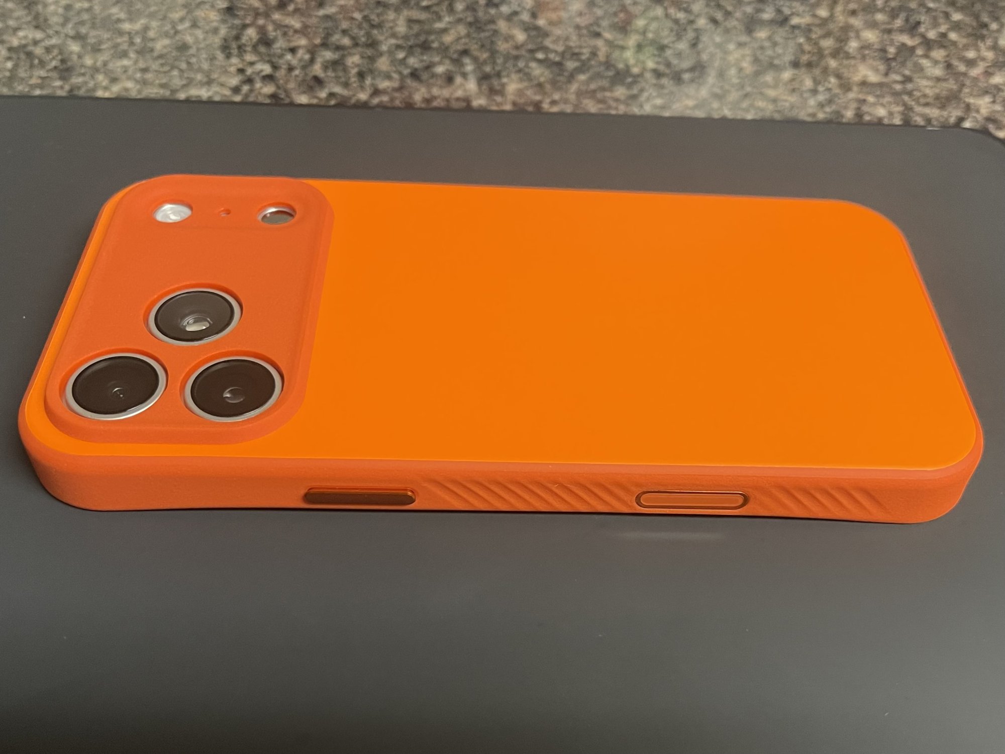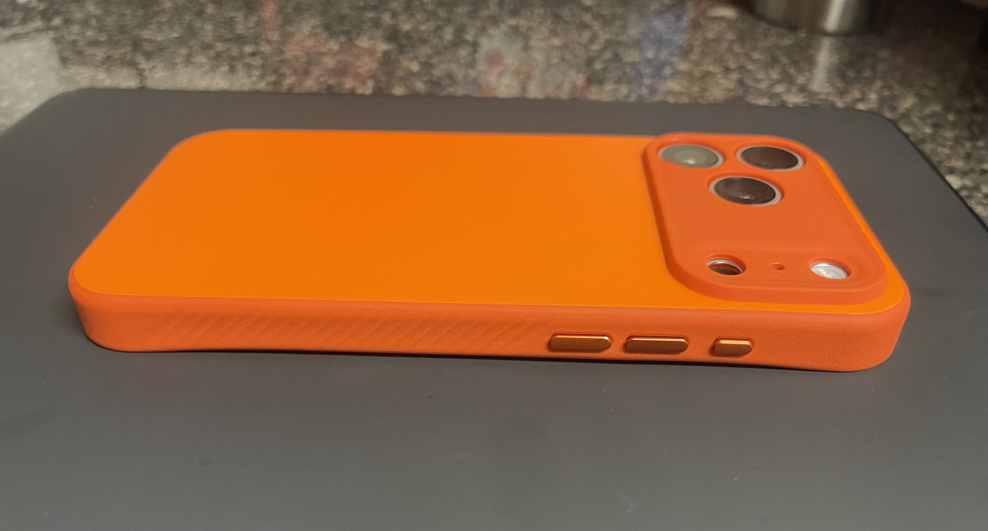 How’s the thinness?Here are some pics of the Paragon Ember Precise for the 17PM. This is the first case since the 15PM that I absolutely love. At first glance the orange is beautiful. It’s bright and out in the sunlight, it will be a pop of color. I love the microfiber lining on the bottom of the case but wish it was also for the camera plateau as well. It doesn’t make my 17PM feel bulky nor heavy. To me, the back doesn’t feel slippery and the buttons do rattle if you shake the phone, which doesn’t bother me in the slightest. This will be my #1 case to use when I’m away from home more than a day. No more case searching. I also ordered some Violet buttons that were shipped out today.