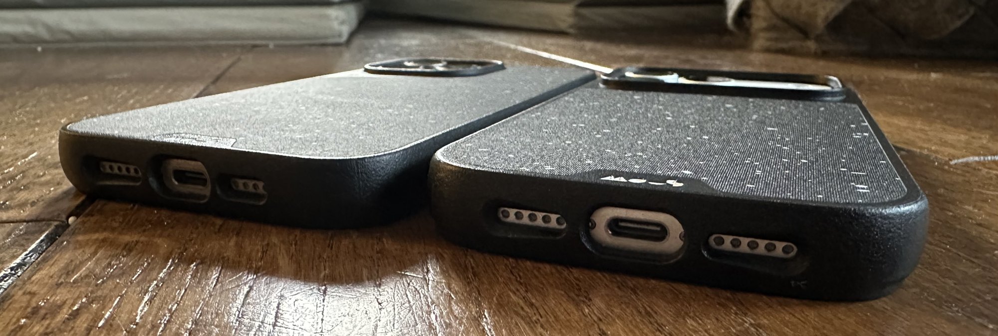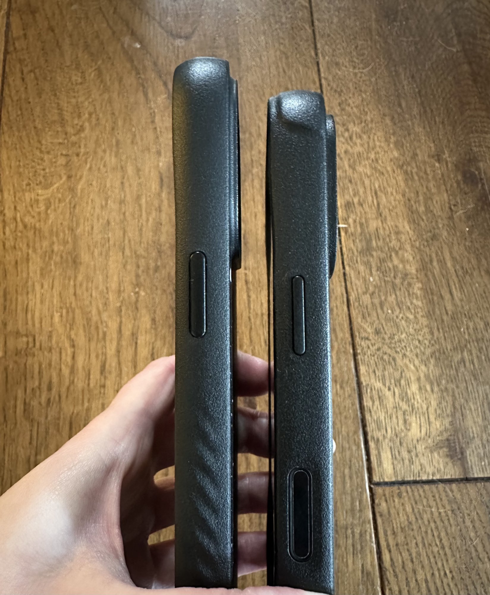 Mous claims that by removing the TPE (AiroShock) along the sides they were able to reduce the thickness of the sides by ~25% without significantly affecting protection. You can see it in your last photo, where the side on the 15 model is sort of rounded, whereas the side on the 17 model is more flat. Here’s a note from the Mous rep: