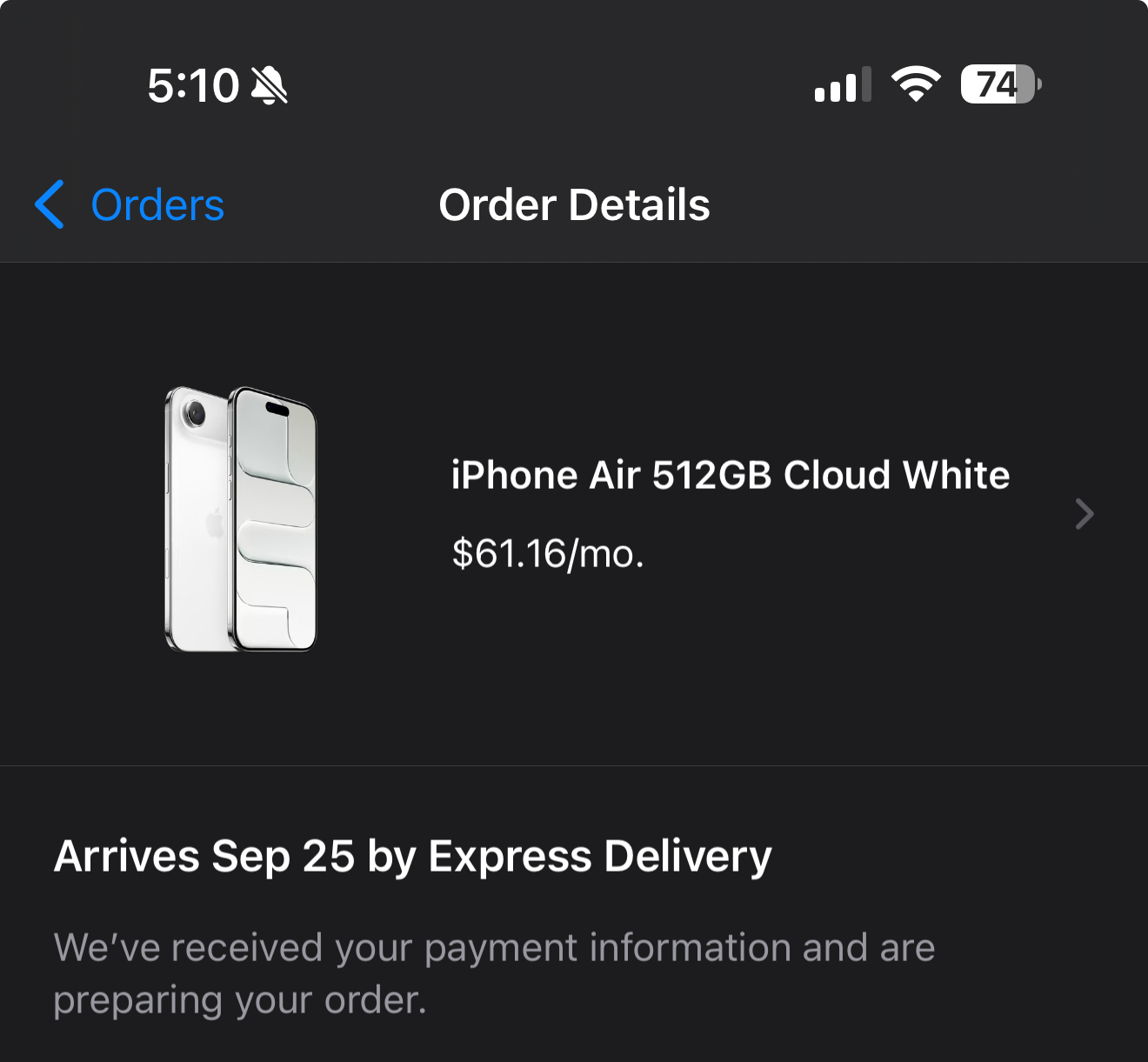 I ordered the same but 256GB. I am disappointed in the 9/25 delivery date ☹️