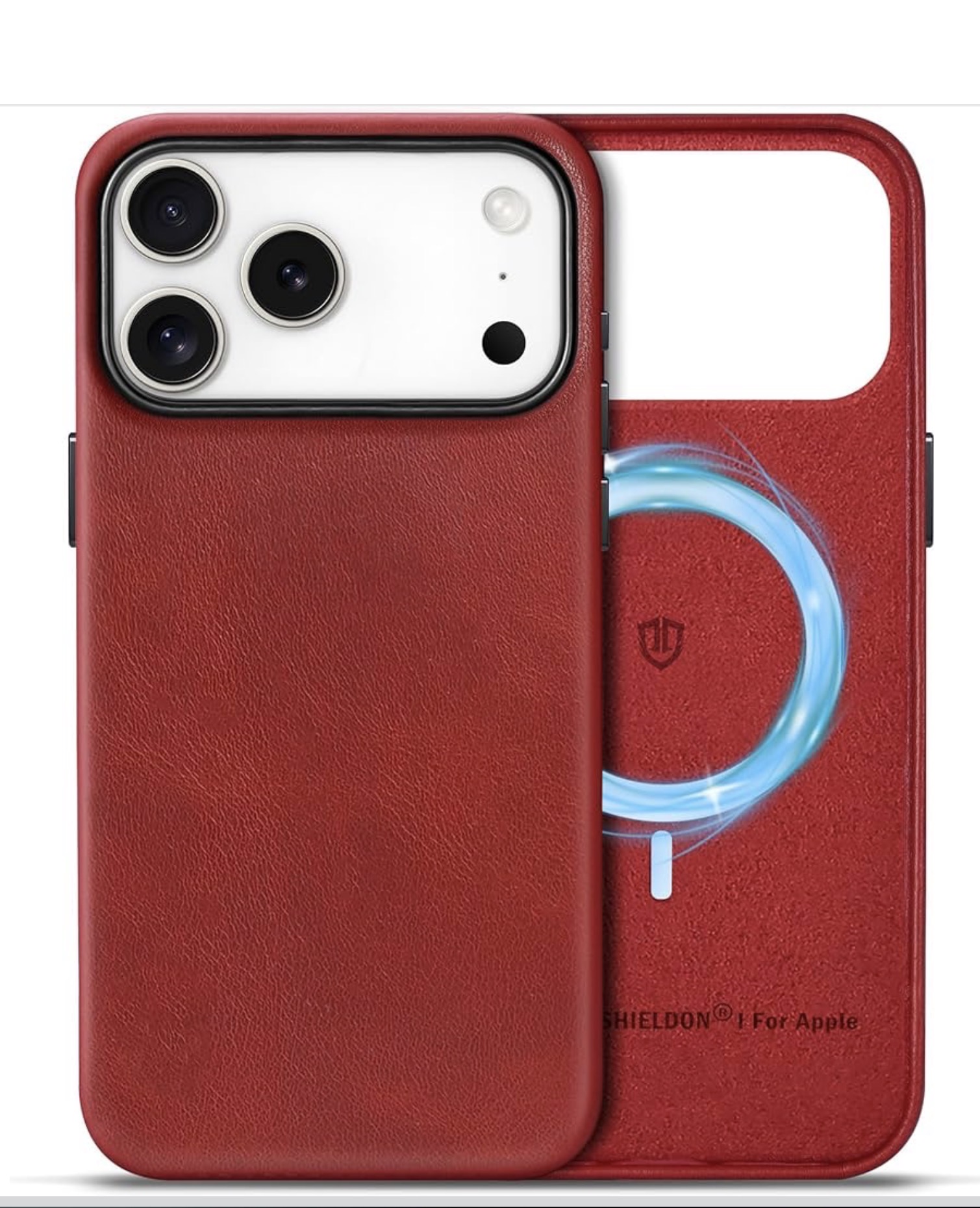 SHIELDON Genuine Leather Case for iPhone 17 Pro Max 6.9 Inch 2025 | Magnetic Wireless Charging, Slim Fit, Non-Slip, Shockproof Protective Phone Cover with Metal Buttons & Camera Bump Frame - Retro Red https://a.co/d/83tN9pS