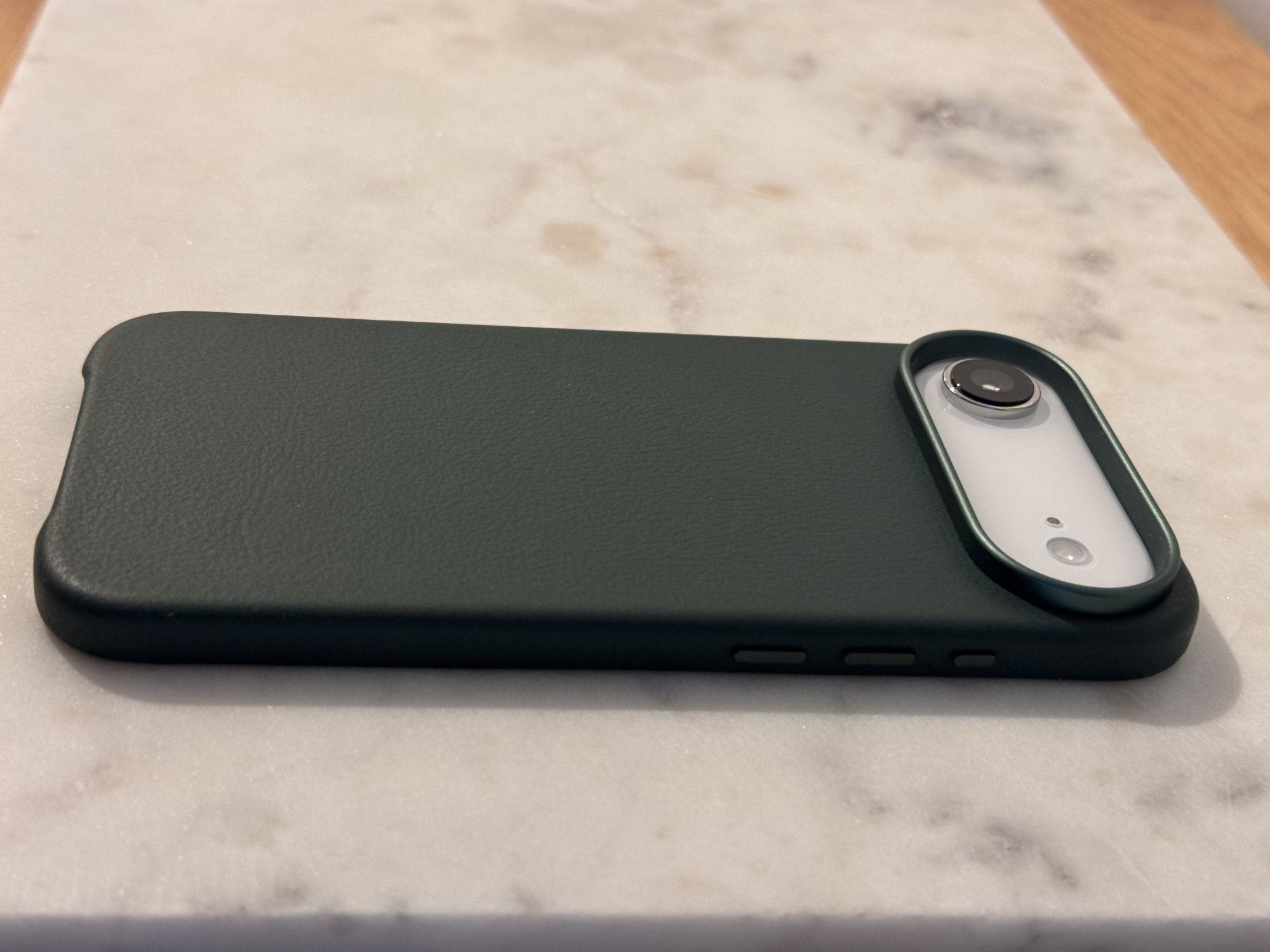 Thanks for sharing these! Do you have a photo that shows how the front looks like?While waiting for the Wiiuka skiin more case (which is delayed for at least one week before shipping). I went for a Lonli dark green leather case. (Amazon). It’s made of Vachetta leather. The case is very good for an unknown brand (at least I never heard of them). Smells and feels good soft. Same color green aluminium around the camera bump. Good working buttons everywhere, including camera control. I really like it.