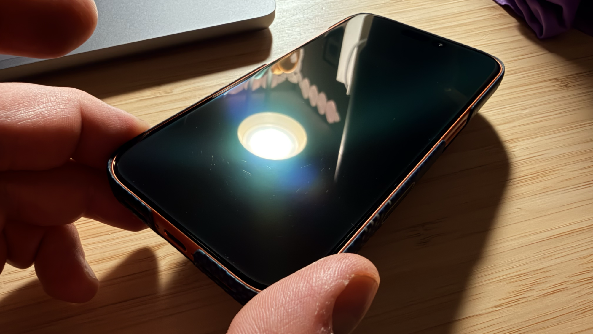 Would also like to know if the black borders cut into screen at all? This one looks good but if it's like the ESR then it will cut into a couple of pixels on the side.Anyone try the Caudabe Crystalshield Elite AR? Says AR coating and also no rainbow.