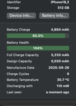 I have a sense that the battery is not lasting as long as my 14 PM did but that might just be because of iOS 26. TBH, my phone largely sits around on weekdays because I'm mostly working. On times when my 14 PM wouldn't see much use, I'd get four days from 100 percent to when it needed to be charged and I usually plugged it into the charger when it got down to around 35%. I updated to 26 on the day it was released and that dropped to a bit more than three days.