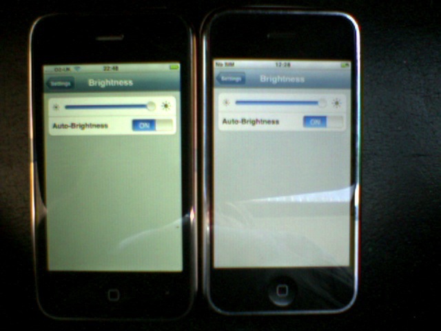 You can see it clearly in the following photo. The iPhone 3G is on the left, my old iPhone 2G is on the right. The 3G's one is distinctly yellow and dimmer than the 2G one when set to identical brightness.