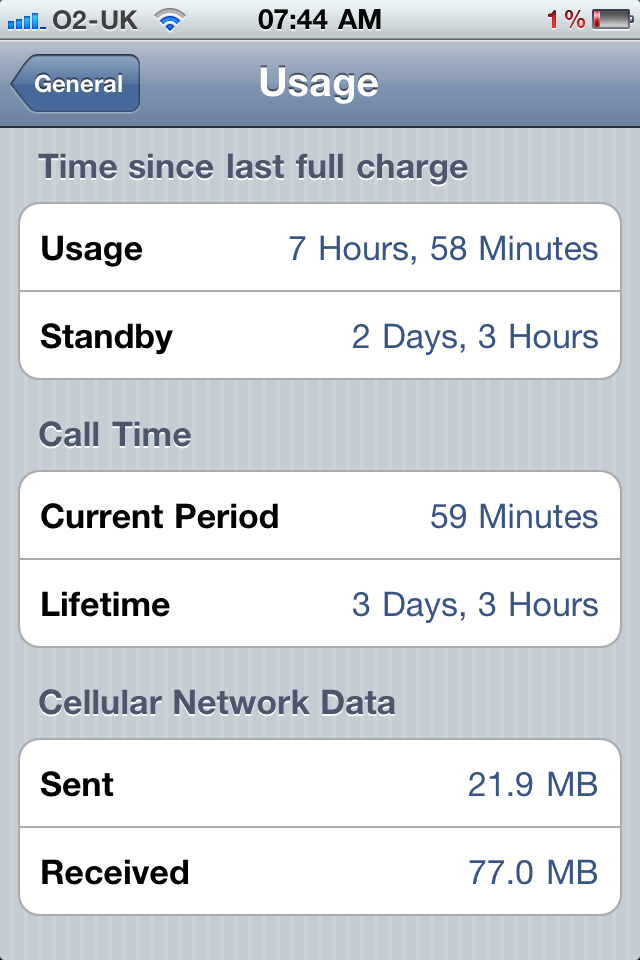 Were talking, charging from 12am to 6am. Work from 7 to 4 barely using phone avg 50 texts. No WiFi and no web use.