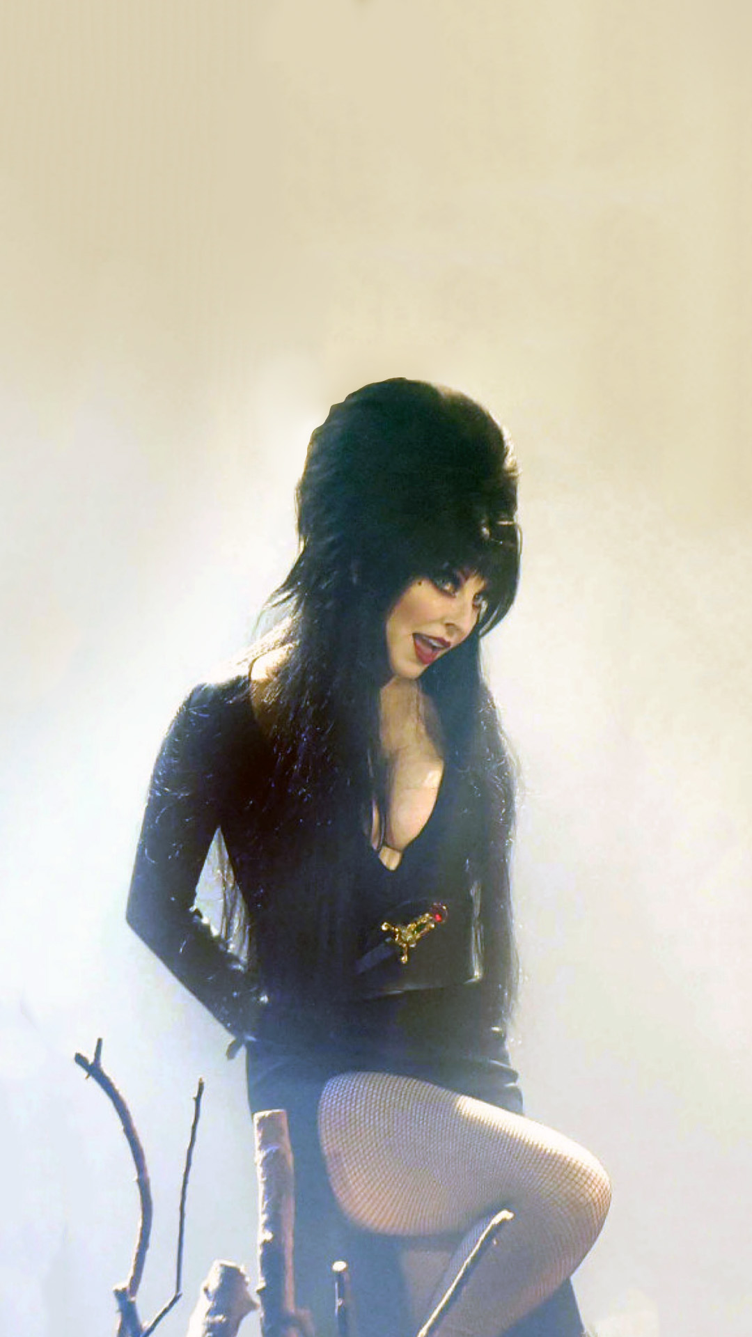 Hello I'm new here! I'm needing a new wallpaper for my phone. I'd like this image of Elvira for my lock screen but the clock always covers her face. Well I was wondering if anyone could help make one that better fits the lock screen without hiding her face and also put "Work it like Elvira"