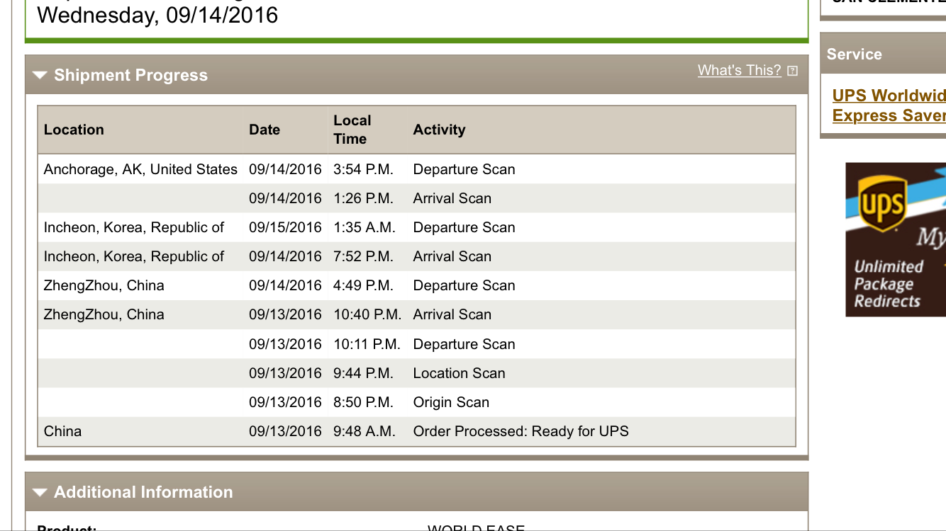 Scheduled delivery change to Thursday 09/15