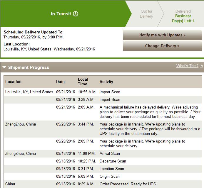 I don't have a Departure scan out of Louisville yet. Everything was looking so good until Louisville. Maybe tomorrow. But my scheduled date still shows today (that's not happening).