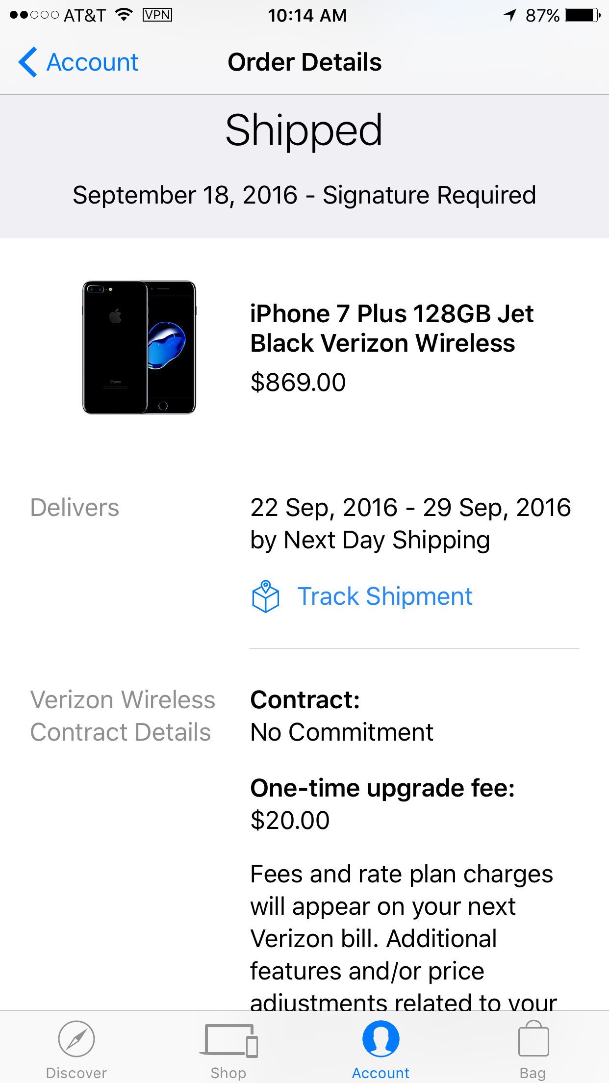 So, called UPS again, and the automated tracking still insists my 7+ 128GB Black AT&T will be delivered today, and 5 minutes later the UPS truck drives right by without stopping.