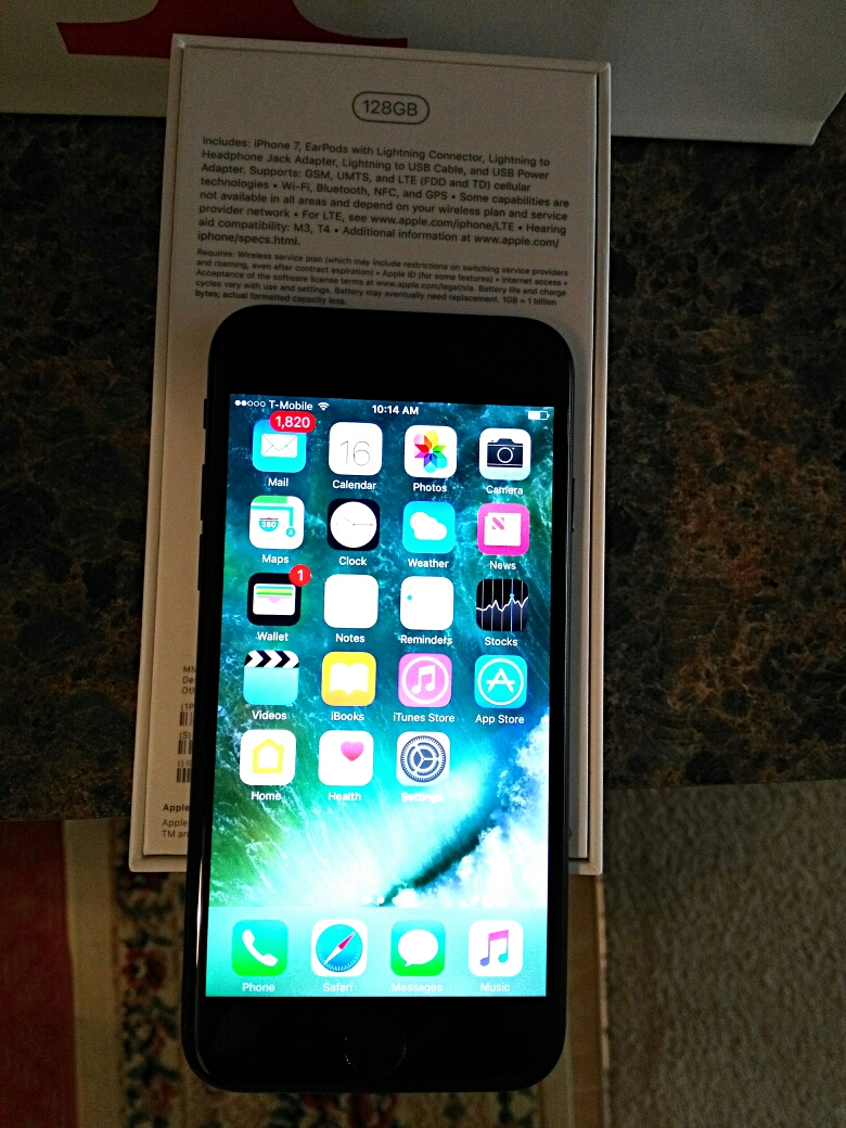 OMGGG i went to 4 different ones and none of them had any 7 pluses. Arghhhhhh i'm jealousHere's my story: Went to the first T-Mobile store this morning and they let me in at 7:45 only to say they didn't get any iPhone 7s in for today. Drove quickly over to the Mall and saw a T-Mobile rep at the food court and he said they got 3 regular iPhone 7s in and there was one left. He went with me to the store. He went to the back and got the matte black 128gb and then tried to up-sell me to an iwatch and ipad pro. I said no and then he says these phones are reserved for new customers. That was an unbelievable! I told him that I've been a customer for over 10 years and he was going to sell me that phone. With no expression at all he continued to ring up the sale. Photos attached. Note. the photos of the phone wasn't taken with an iphone. I've started to play with the camera and the photos seem really good so far. I'm coming from an Note7 that I just had to turn in.