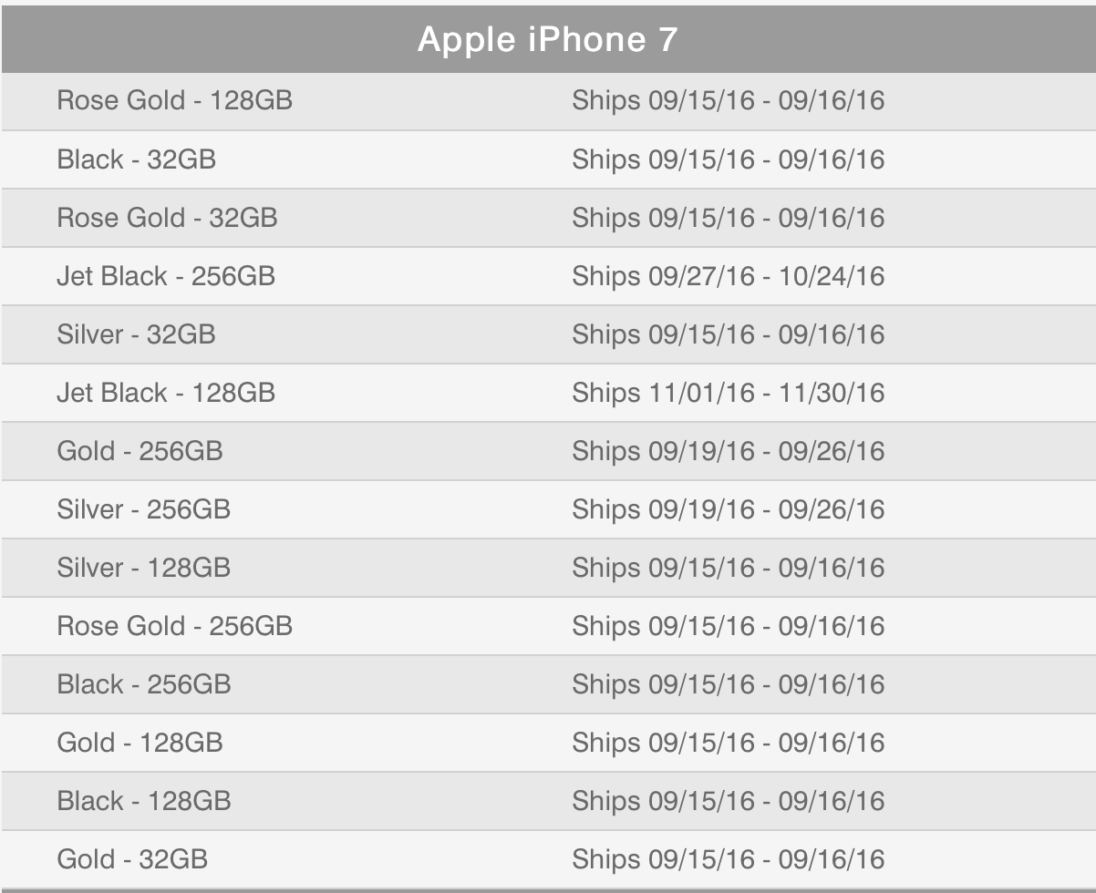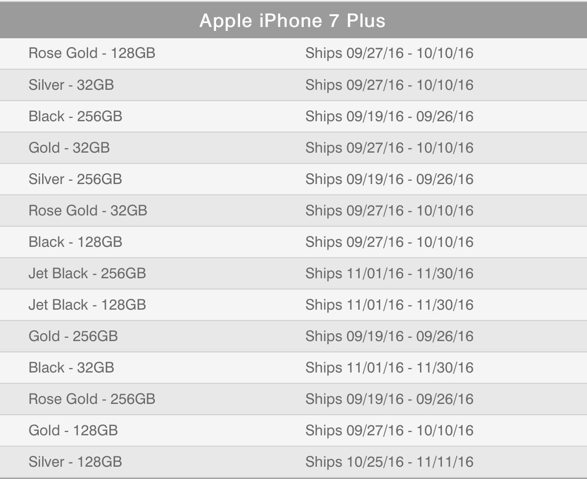 iPhone 7 128 Jet Black estimated to ship in NOVEMBER!