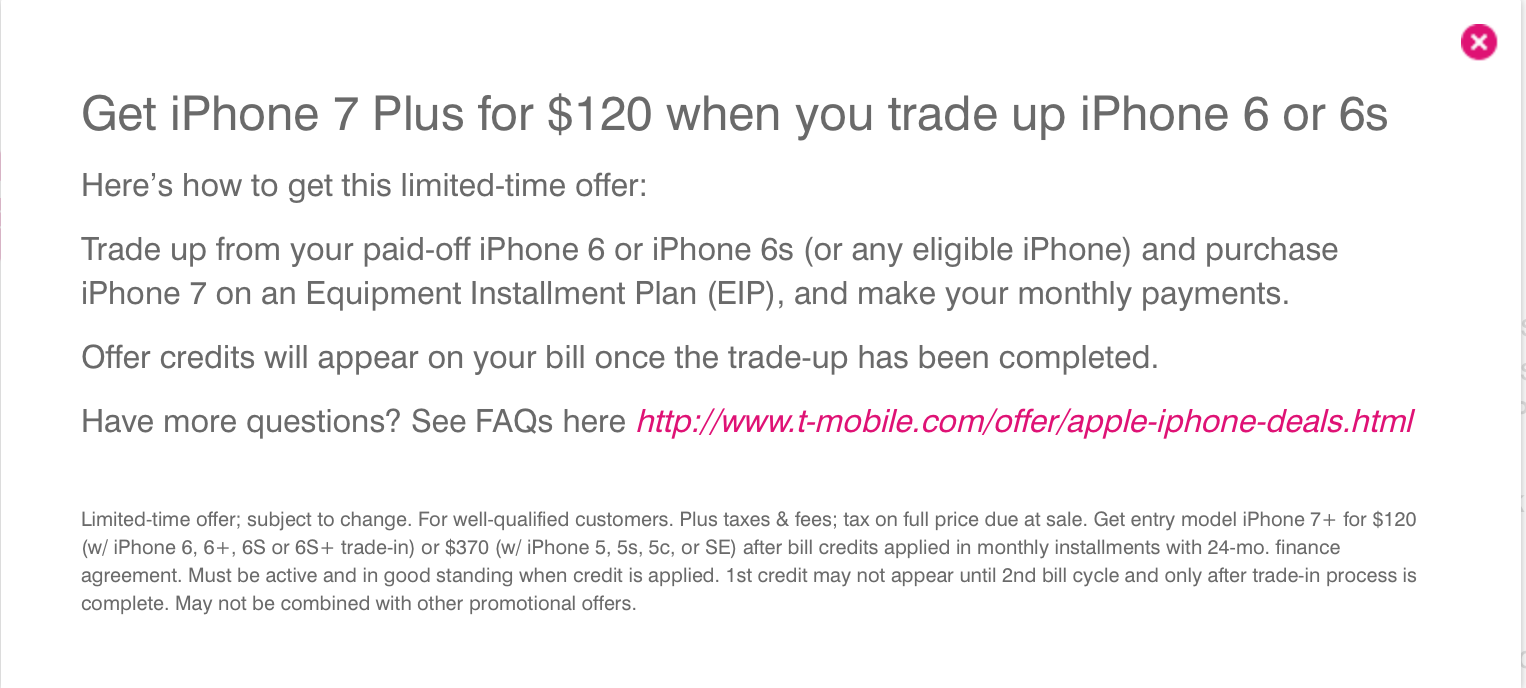 I just ordered my iPhone 7 last night (128 gb Rose Gold) and am hoping to be able to get the trade in offer. I am actually at school in Nashville right now but my family lives in Miami. My mom has a 16 gb iPhone 6 and I was planning on trading in my current 64 gb iPhone 6 in order to get the offer until I realized that the cost will end up being the same whether the 16 or 64 gb is traded in.