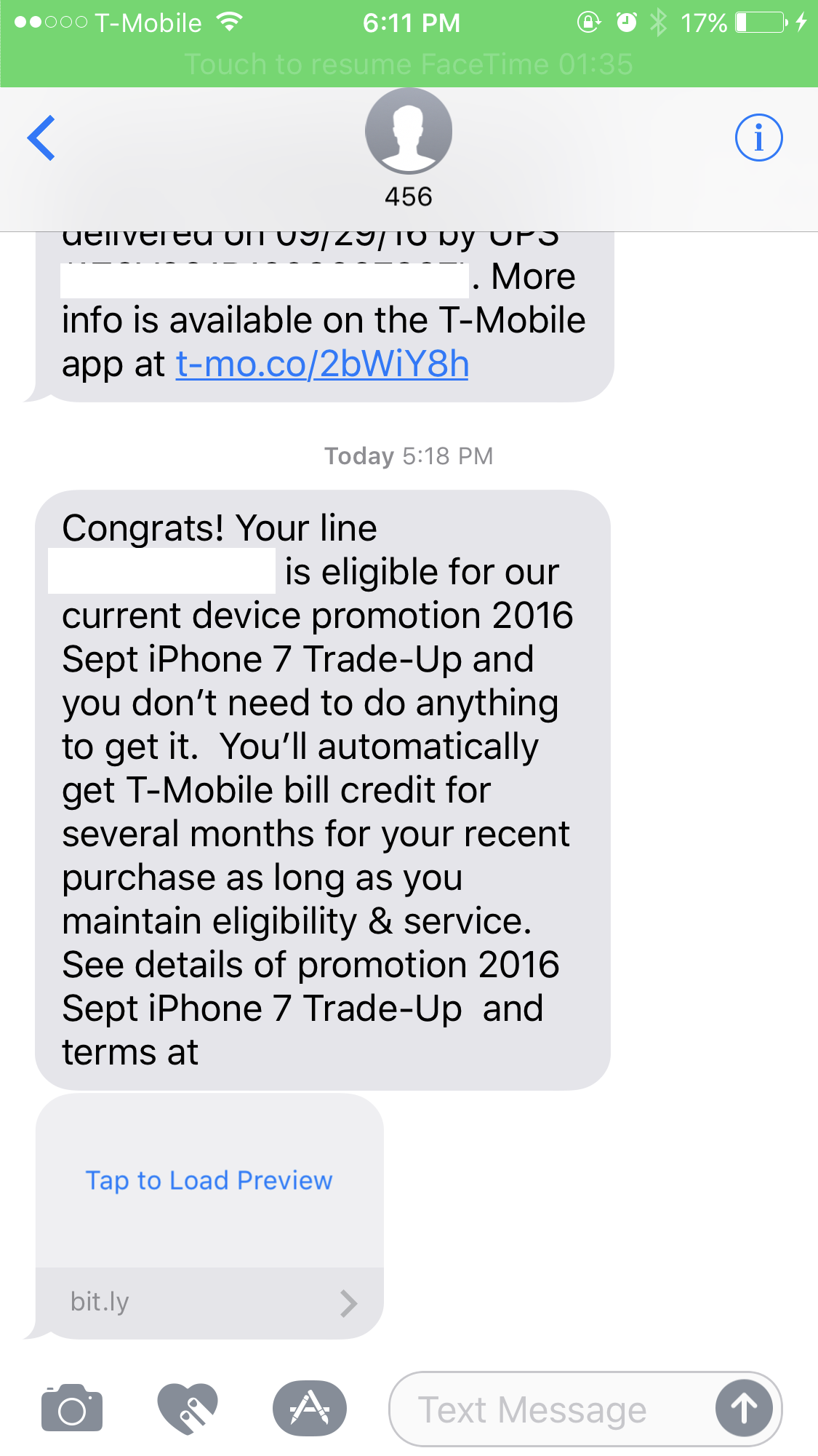 How many days was it after it delivered till you got the text?Just got a trade in text from tmobile. Preordered it on 9/9 as upgraded without trade in, got iphone 7 on 9/16, manually set up a trade in thru website with iphone 7 order #, sent iphone 6 to tmobile on 9/22. This is how it works. have fun to you all