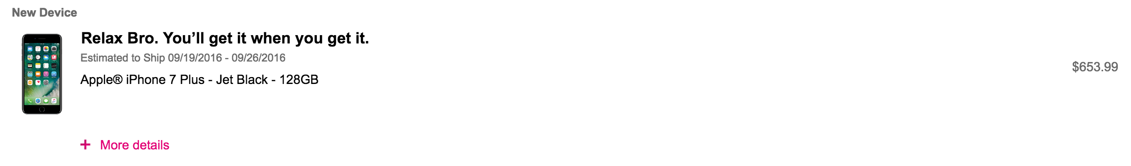 My card has been charged $100 for the down payment of my 7 128 GB matte black, and I have a shipping label created in UPS. The easiest pre-order experience since I pre-ordered the iPhone 5 on AT&T.