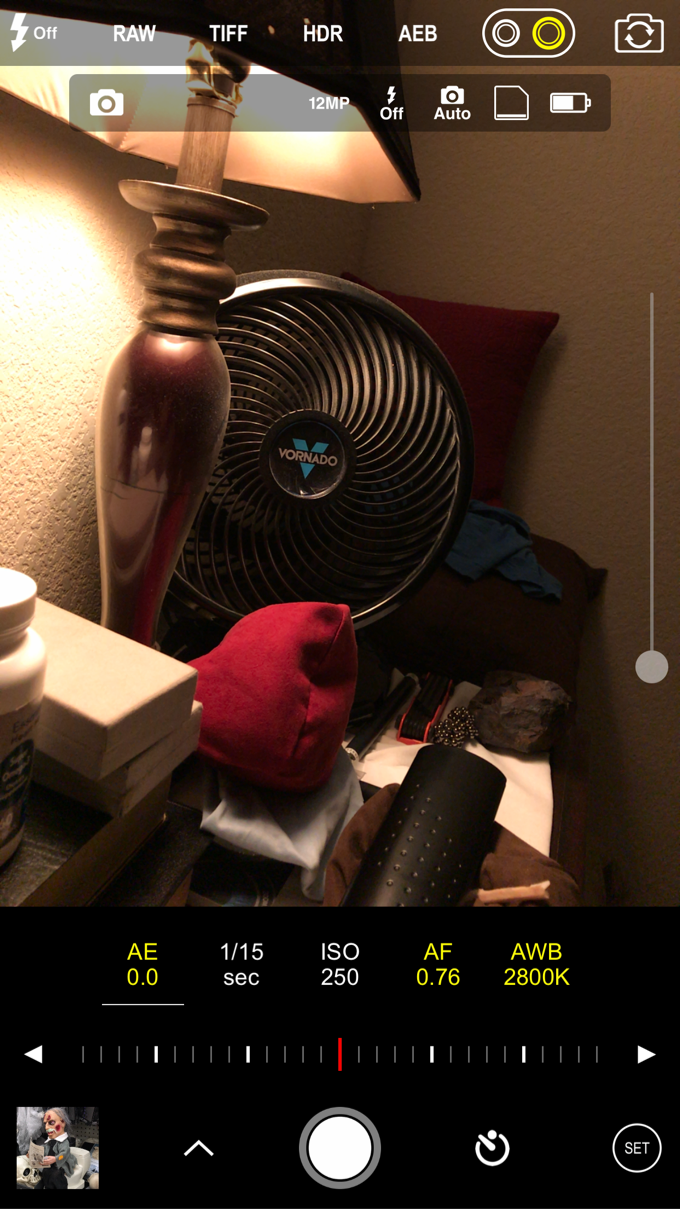 Seriously, if you guys want full control over the wide angle and telephoto lenses/cameras on the iPhone 7 plus, then you get this app. These screen shots show ISO, shutter speed, the camera being used, etc. the camera selected is highlighted in yellow at the top right corner of the app.