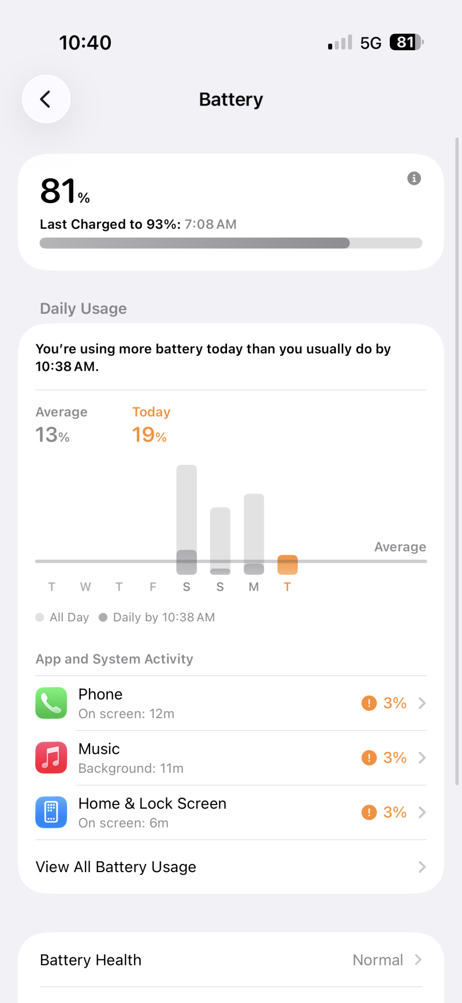 Now I have a key question before I can compare: there is a massive difference between Monday (8.5 hours with 78% used) and Saturday (5 hours with 73% used). Since iOS 26’s new battery screen is garbage, how should I interpret that?