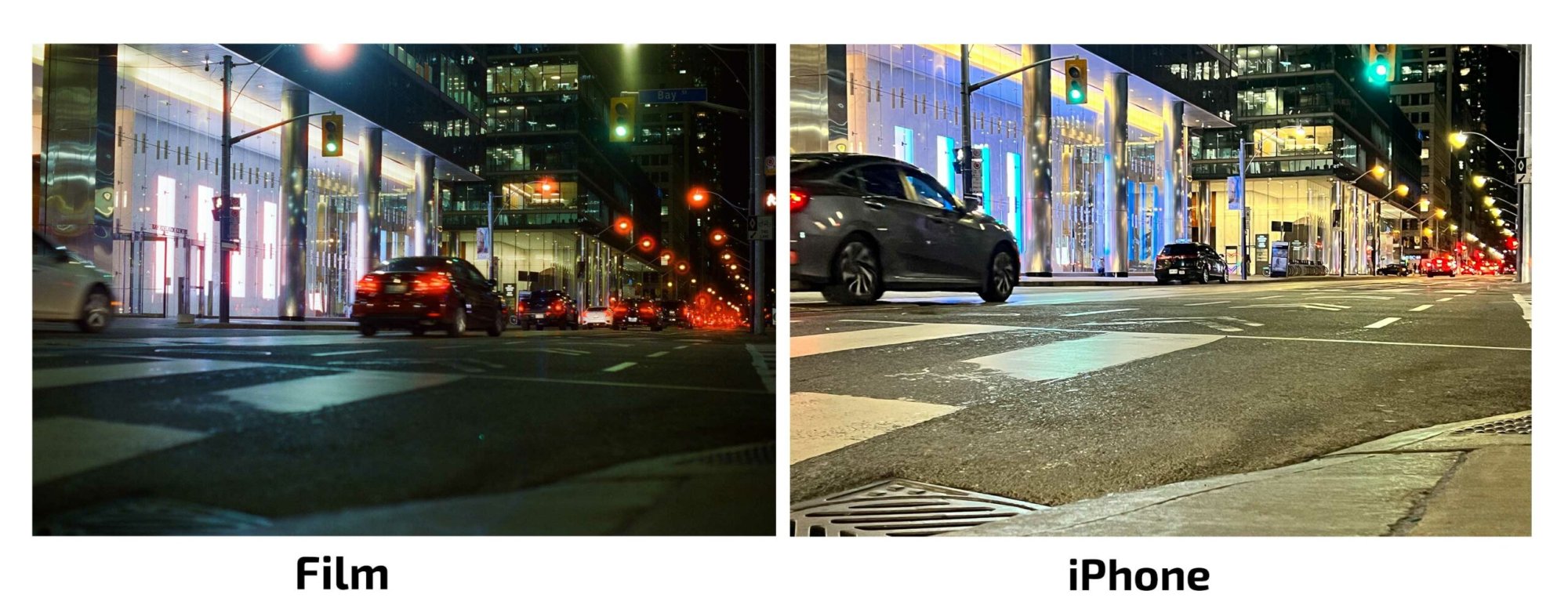 Here are few examples of how a film camera compares to one of the latest iPhones (sauce):