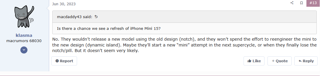 So no I don’t believe in a 15 or 16 Mini. We'll see when Apple get at 17 or 18 - you never know?