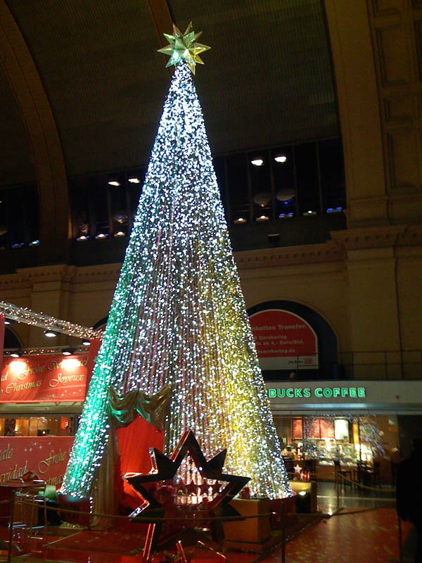 The really big christmas tree at Frankfurt am Main Central Station.