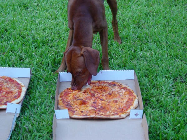 Give a dog a bone ? Heck no - Vizsla like PIZZA