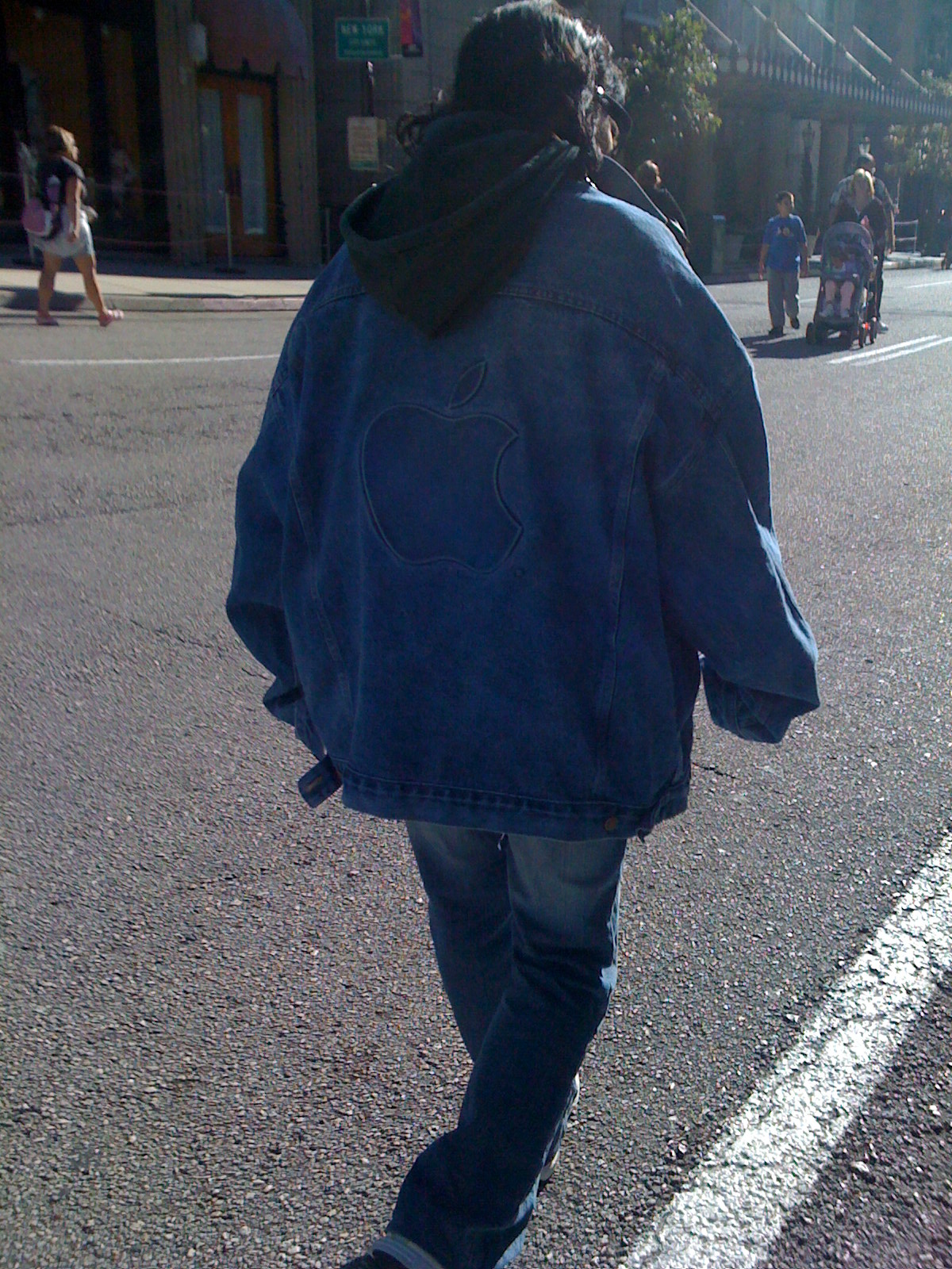 Lol this lady was wearing a jean jacket Apple jacket, we had to snap a pic.