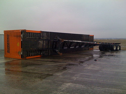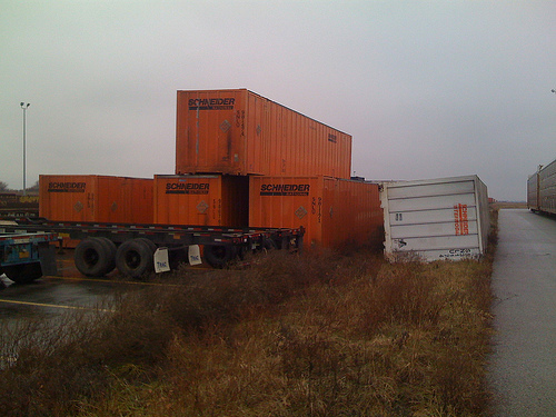 In Kansas City we had some decent storms blow through in the morning. I work at a rail yard in KC that had a few 53' trailers blown over. Check It!