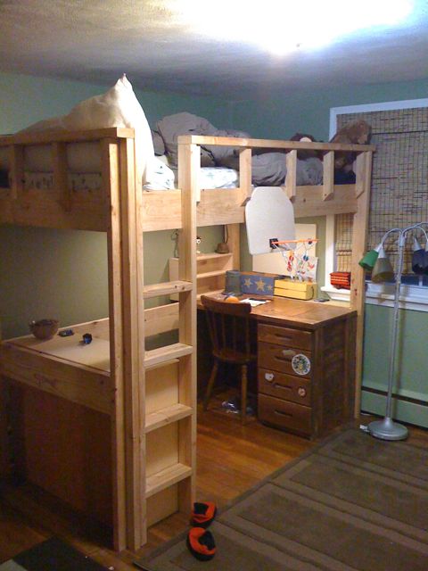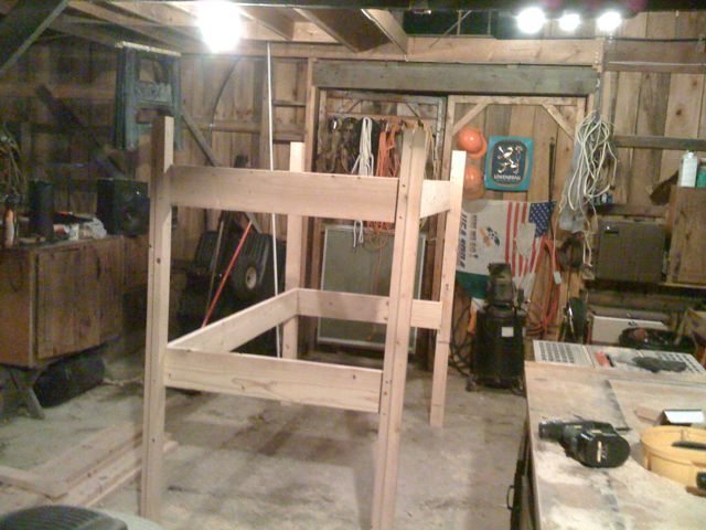 Over xmas I built some bunk beds for my kids in my barn on some cold winter nights/. In between controlling my iTunes playlists with my iphone and the Remote app 150 feet away from my house I took some pics of the process. Great plans from this site: http://www.plansnow.com/dn1147.html
