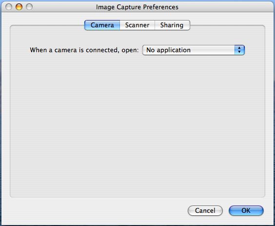 whenever i plug in my SD card in the USB slot, iPhoto automatically starts. I'd like to turn that off. I've tried CD & DVD in System Pref, but that didn't work. I believe i have iPhoto 4.02 installed. Thanks everyone!