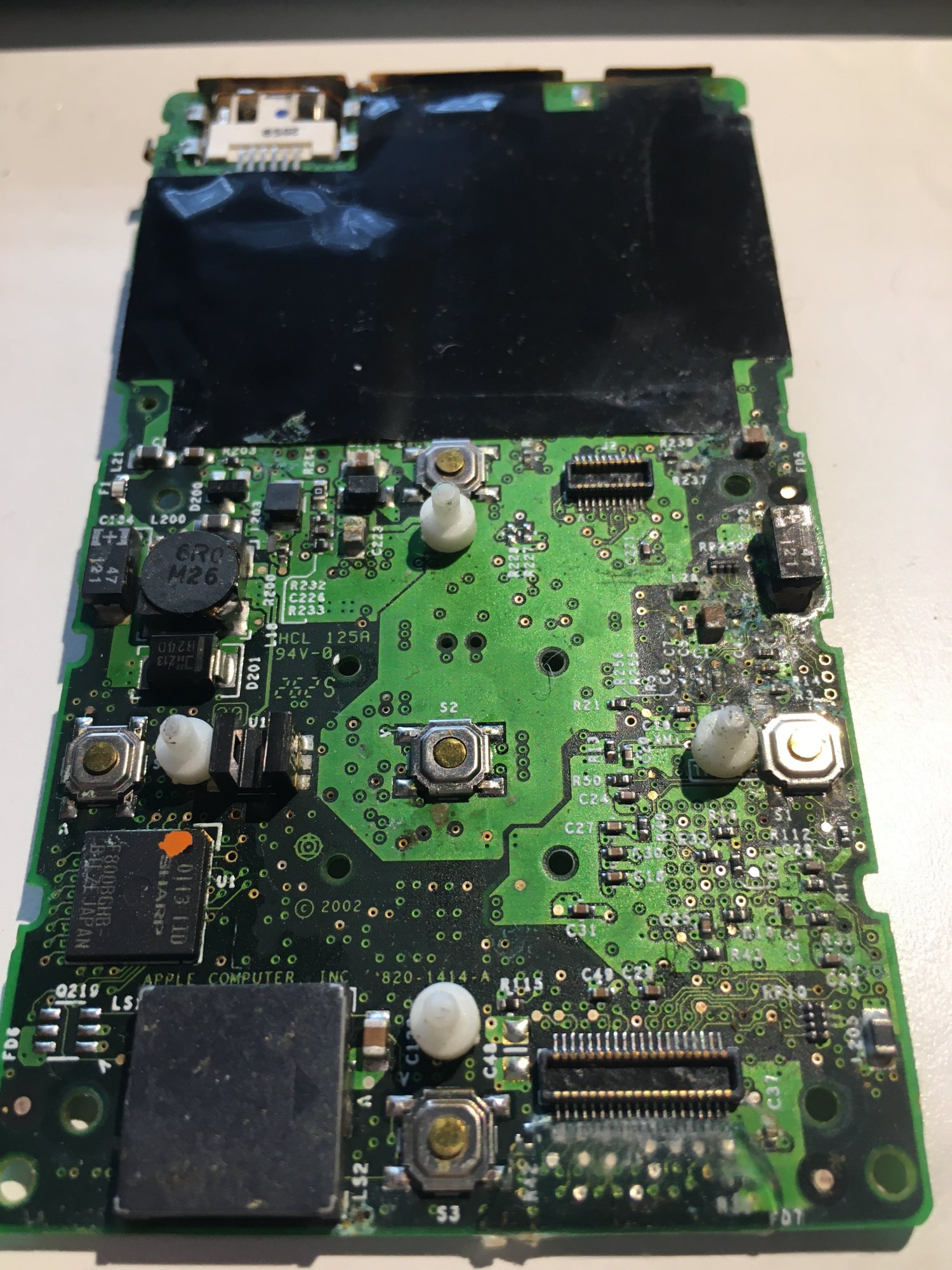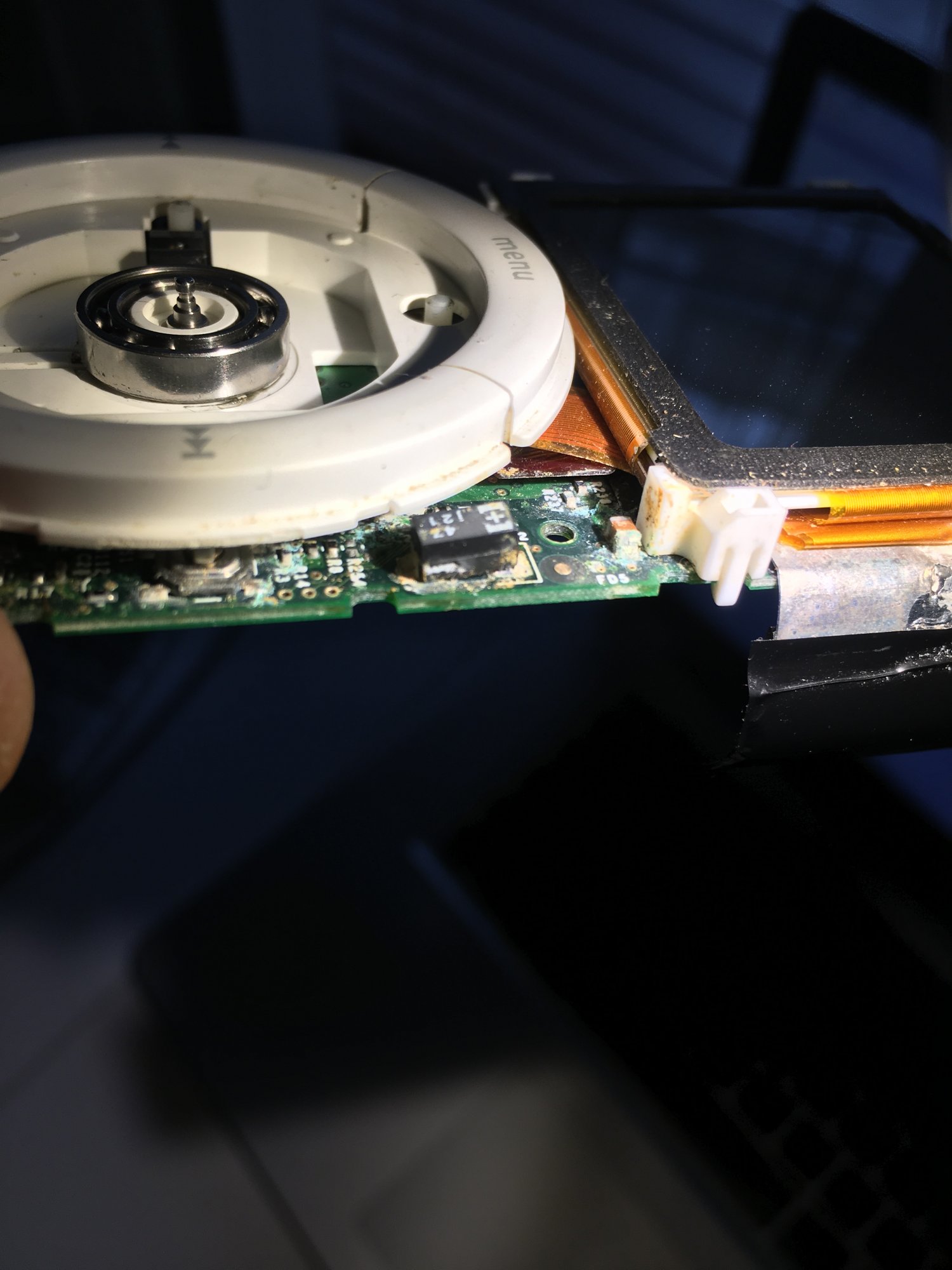 My main concern is maybe between this metal pin and MoBo is another rubber stand as a contact which got displaced or deteriorated over time. Is anyone took apart Original iPod 1st generation and it's controls, having more experience in that than me and could help? I'll appreciate it.