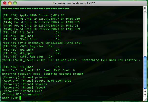 Almost all tutorials online telling you how to get your phone out of recovery mode by using iRecovery say to use the command printenv to check the value of auto-boot boolean. The problem is, whenever I use the command, nothing happens, it just returns to the prompt. It's the same as for the other commands I type e.g.