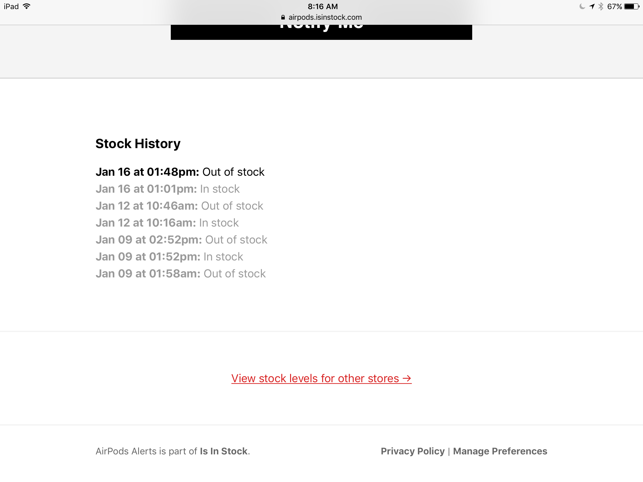 About two weeks ago, I shared Is In Stock—our AirPods email alert service—with all of you and got some amazing response and feedback. Up until now, we were just checking Apple's inventory to see when the AirPods were available for in-store pickup.