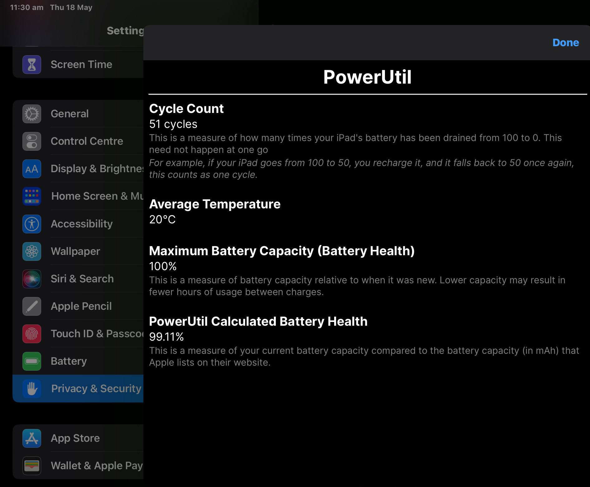 Fwiw I also mentioned my Dad’s iPad was running down fast. They recommended I contact Apple support online or on the phone to do remote diagnostics so I didn’t waste a trip. It was a good thing I did because it was at 82% and ineligible for service.