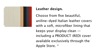 Apple just states on their website that "The leather Smart Cover is crafted from high-quality, naturally treated material that gets its color from a rich aniline dye."