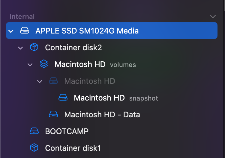 Here is how my drives look via terminal using the command: diskutil list internal