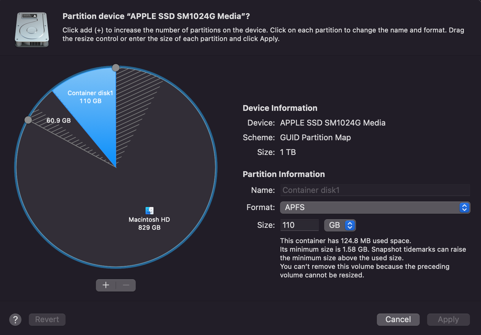 The container disk can only be erased, but not removed. I've Google around and lots of forums say that's normal. However, having 110GB taken up like that seems like a waste of space. Is it normal? Also, what is a snapshot drive?