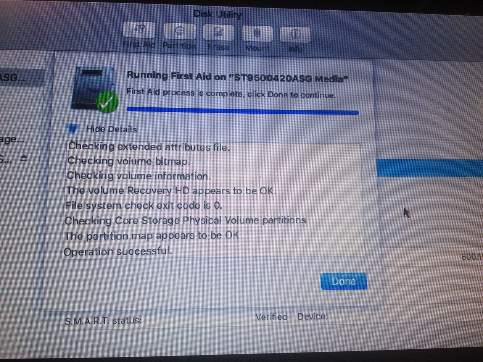 When I choose this option, the disks and partition are grayed out. I was able to try to do first aid on the internal disk once and the attached image shows the results.