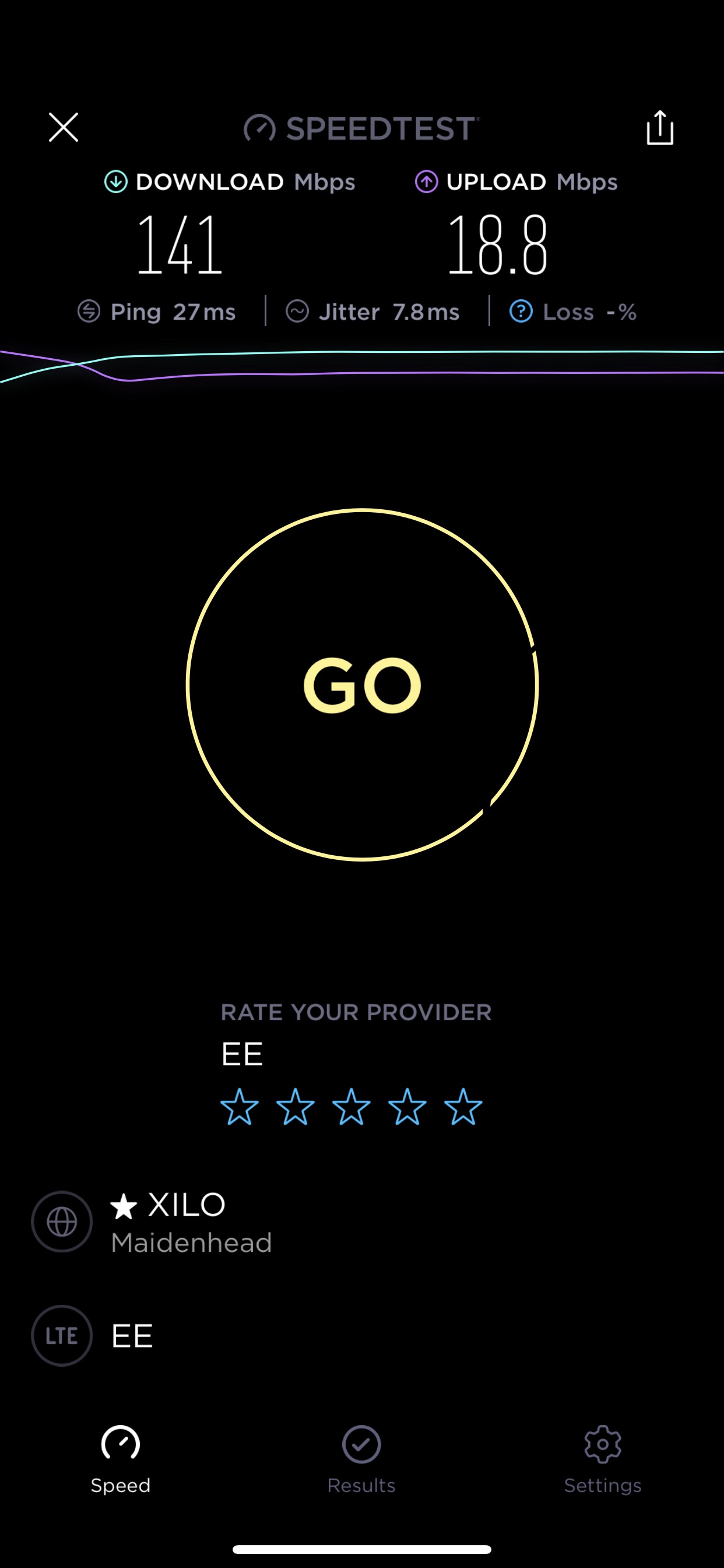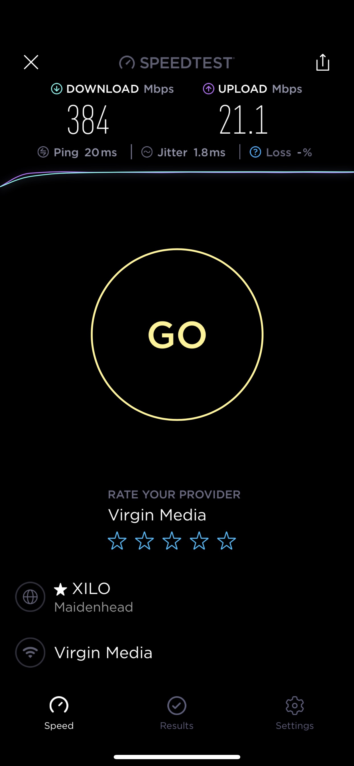 And my Virgin Media connection with a Netgear R8000 router. This is my top speed even when wired.