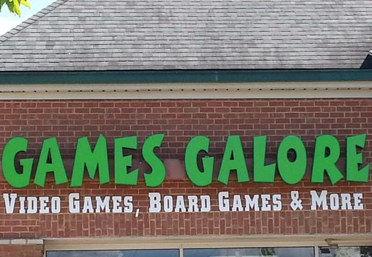 I'd like to know the name of the font used for the green "GAMES GALORE" sign in this photo.