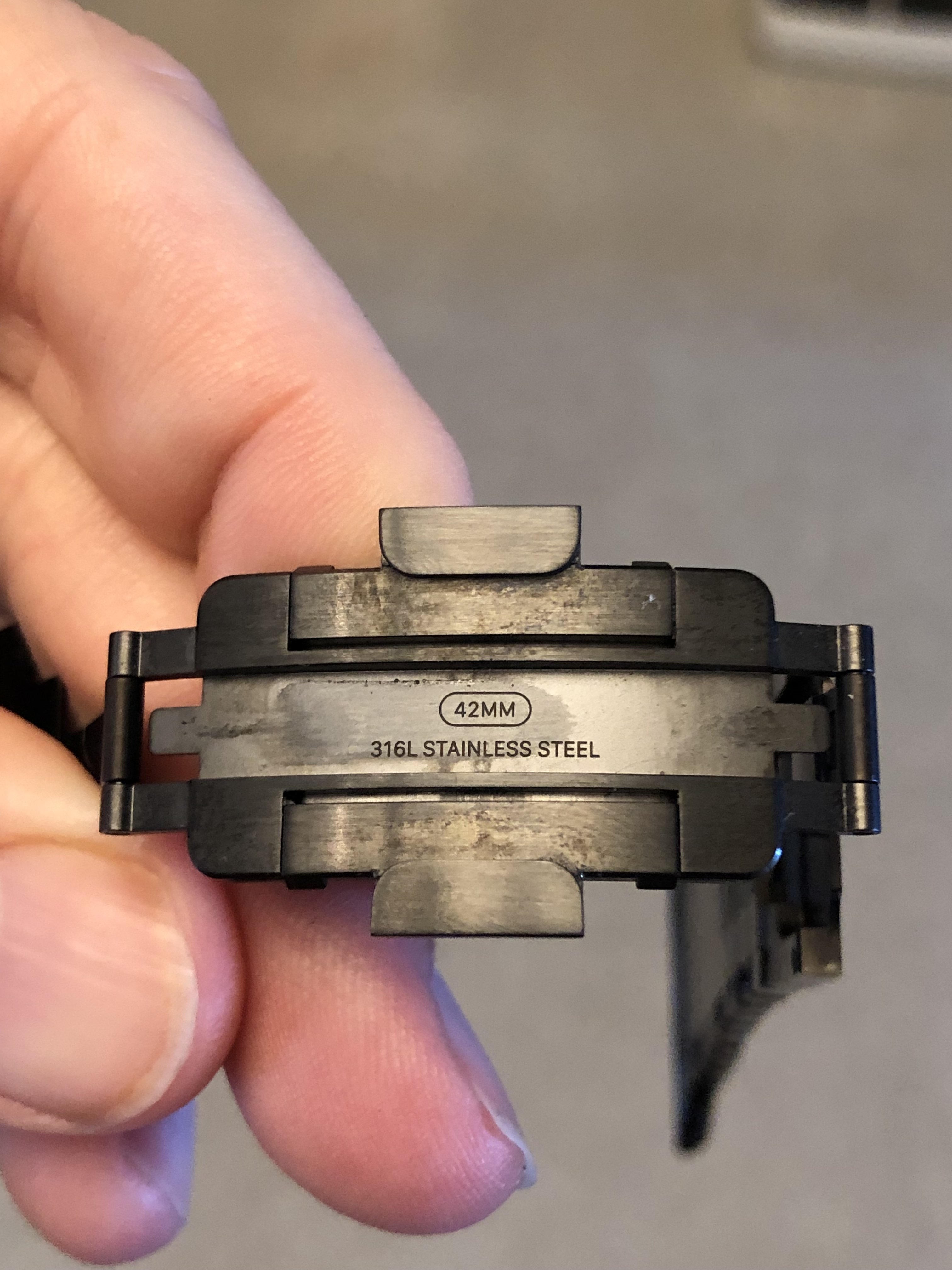 I was hoping for better pictures. This is after over 2 months. I don’t see the “Assembled in China” on the lugs. But there is the 316L stainless inside the butterfly clasp. Either way, it looked brand new. Wouldn’t know how to tell if it’s authentic or not.